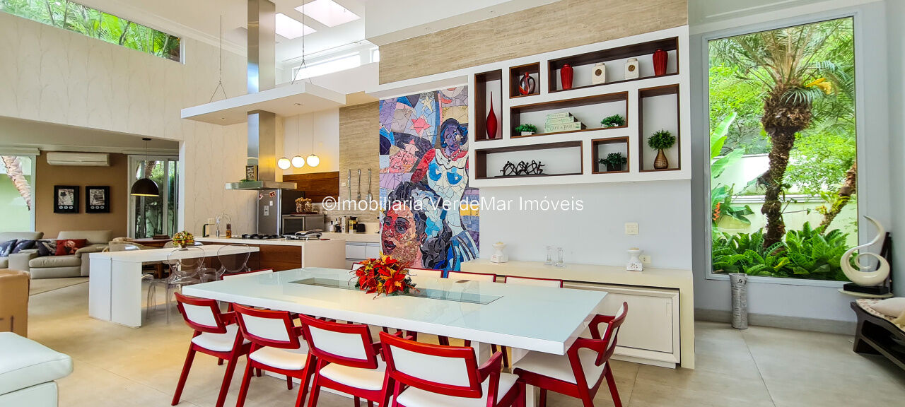 Linda Residência à venda no Condomínio Pernambuco 1 em Guarujá, com 4 suítes, ampla sala arejada para 3 ambientes com varanda, lavabo, copa/ cozinha, lavanderia canil e casa de caseiro completa.