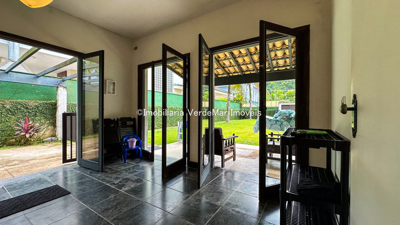 Casa à venda no Condomínio Pernambuco I na praia de Pernambuco em Guarujá, mobiliada, com 4 suítes, sala para 2 ambientes com varanda, lavabo, cozinha e área de serviço.