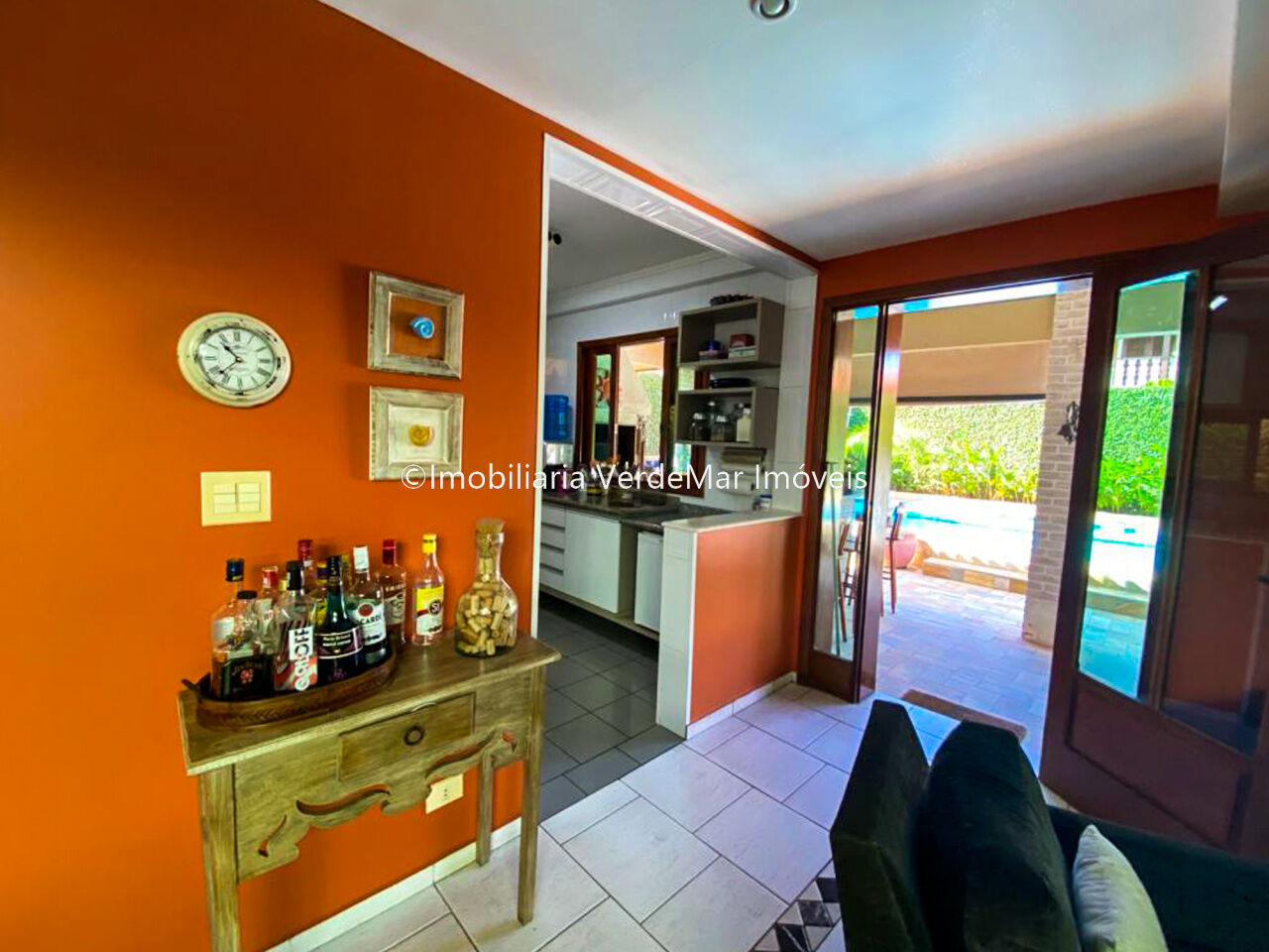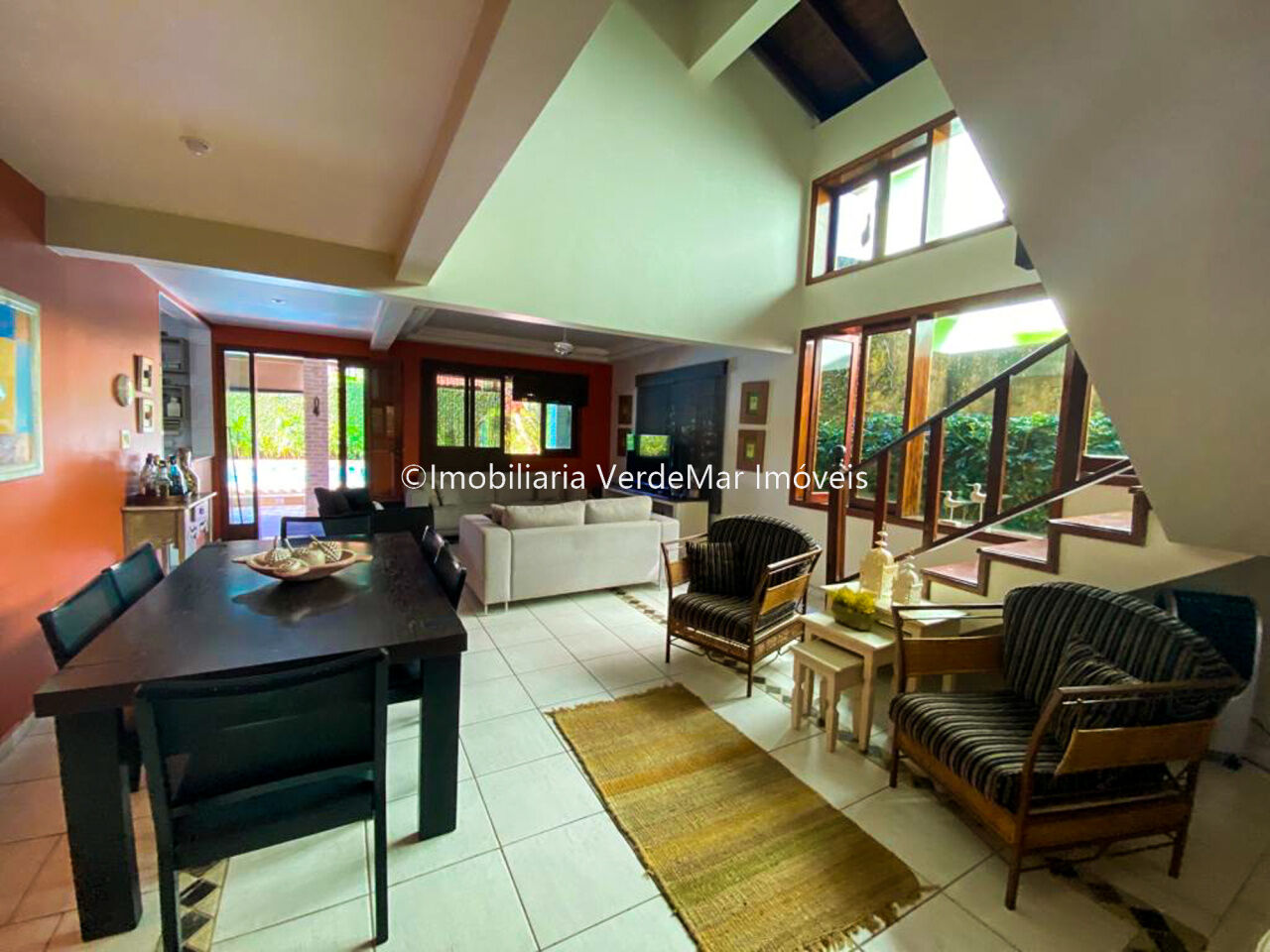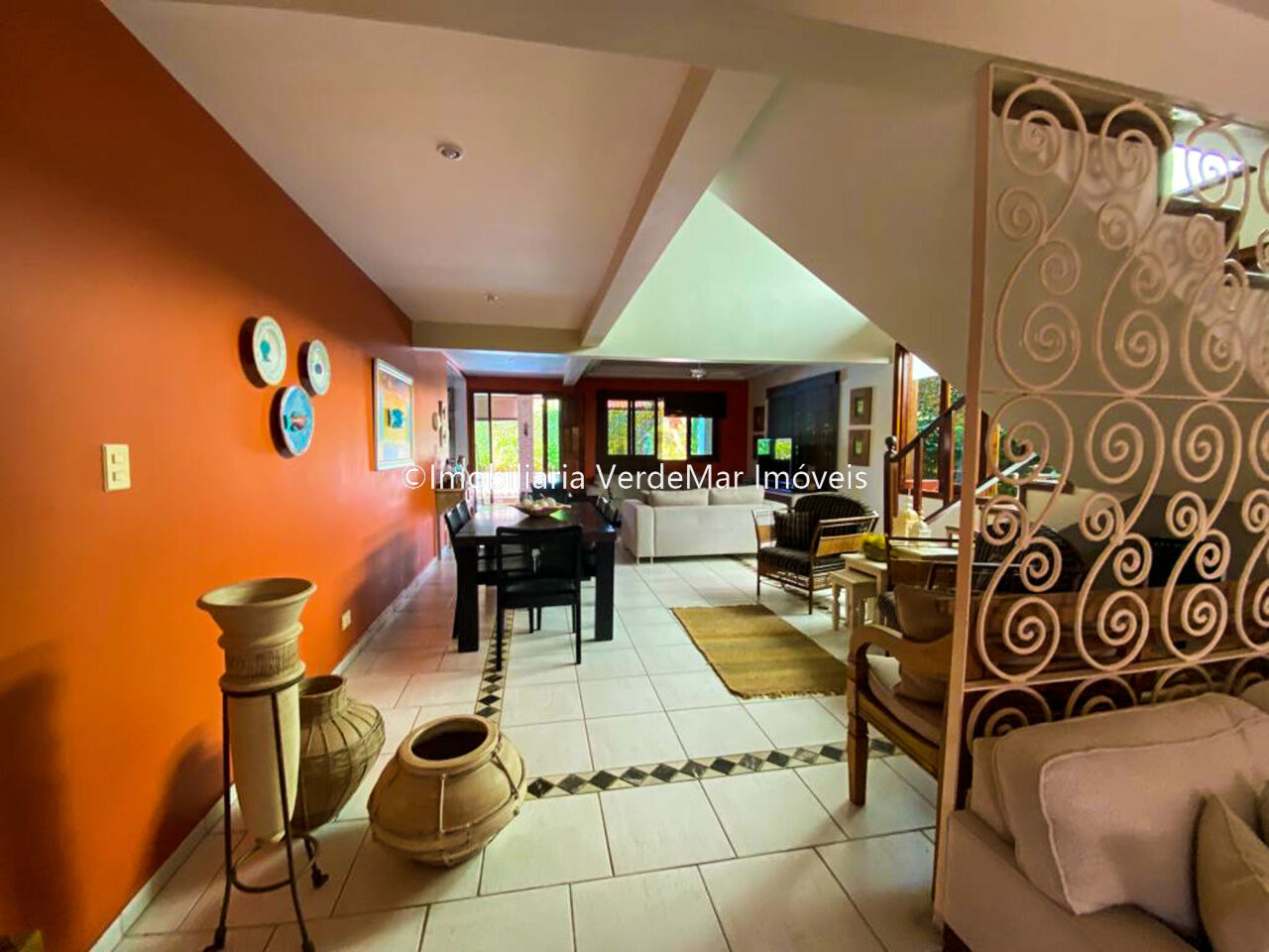 Sobrado à venda no Condomínio Pernambuco 2 na praia de Pernambuco em Guarujá, casa com 4 suítes no piso superior, todas com ar condicionado, sala para 3 ambientes, cozinha planejada, 4 banheiros, lavabo e área de serviço.