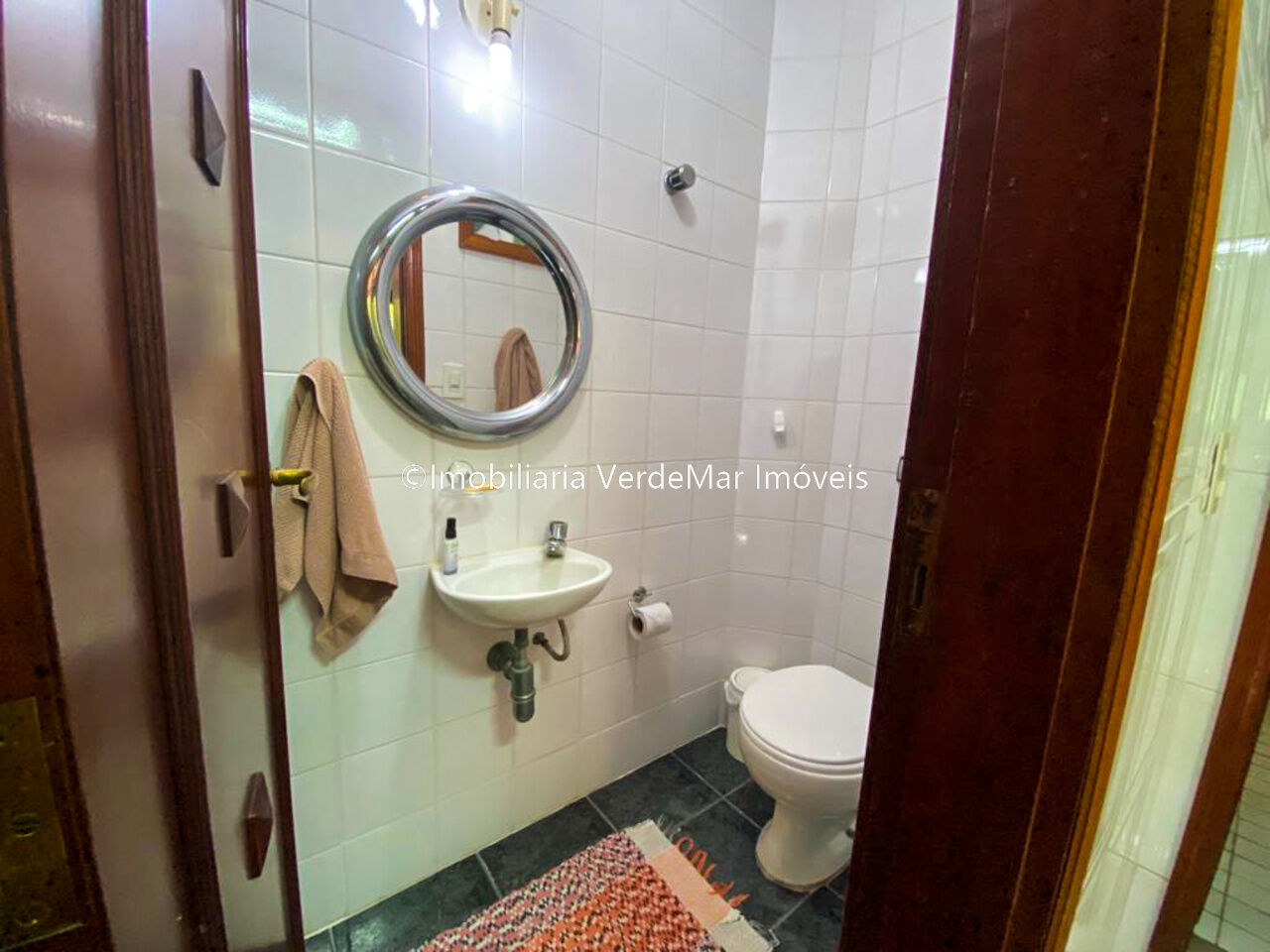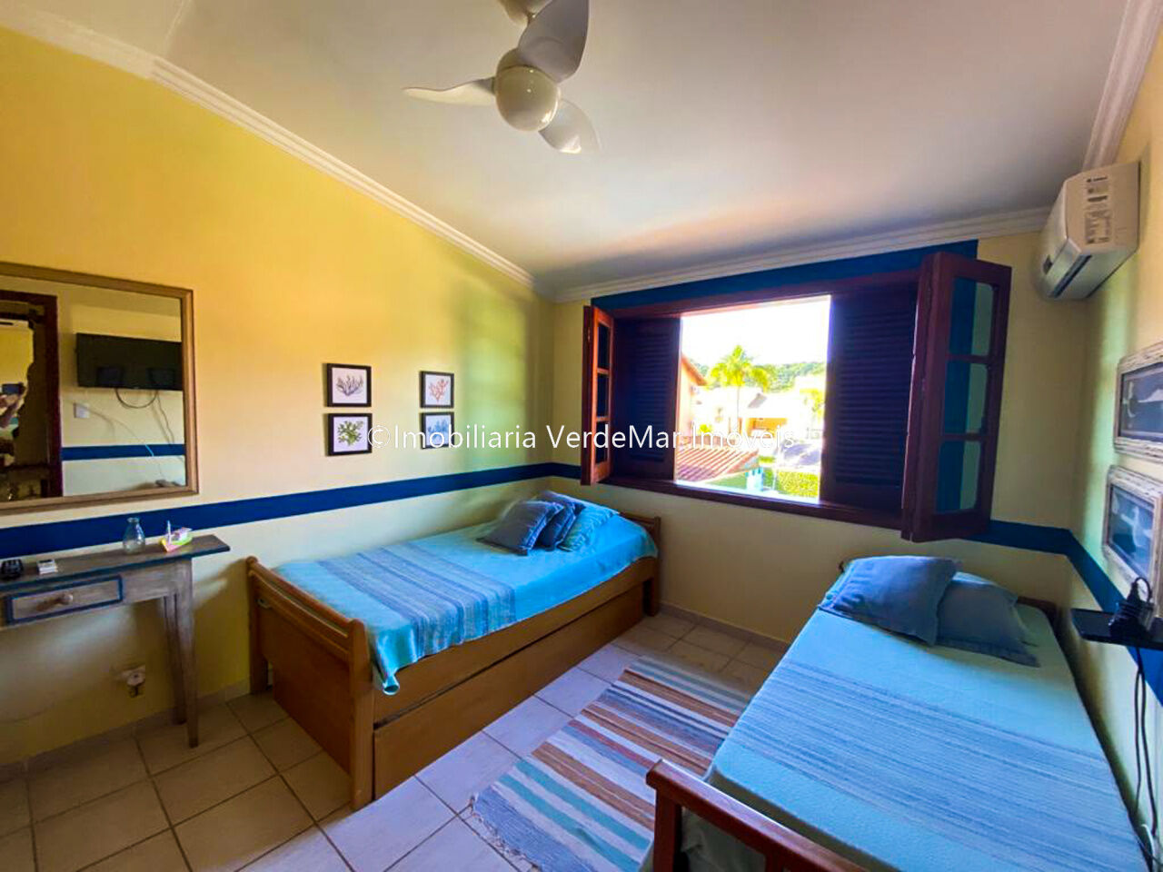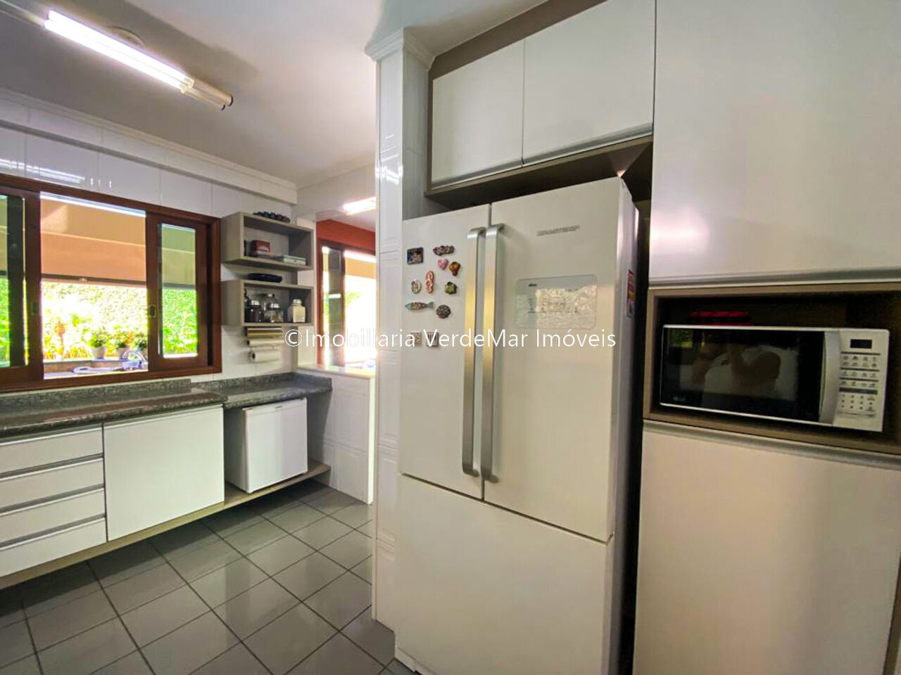 Sobrado à venda no Condomínio Pernambuco 2 na praia de Pernambuco em Guarujá, casa com 4 suítes no piso superior, todas com ar condicionado, sala para 3 ambientes, cozinha planejada, 4 banheiros, lavabo e área de serviço.