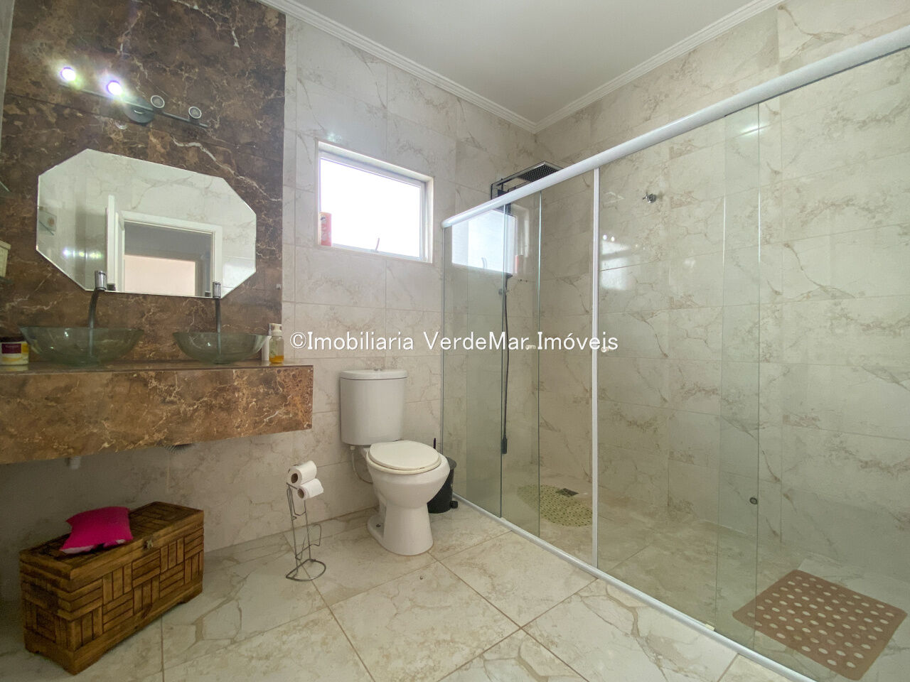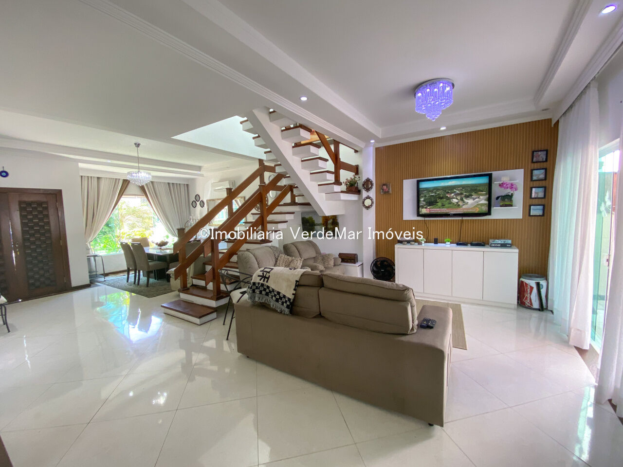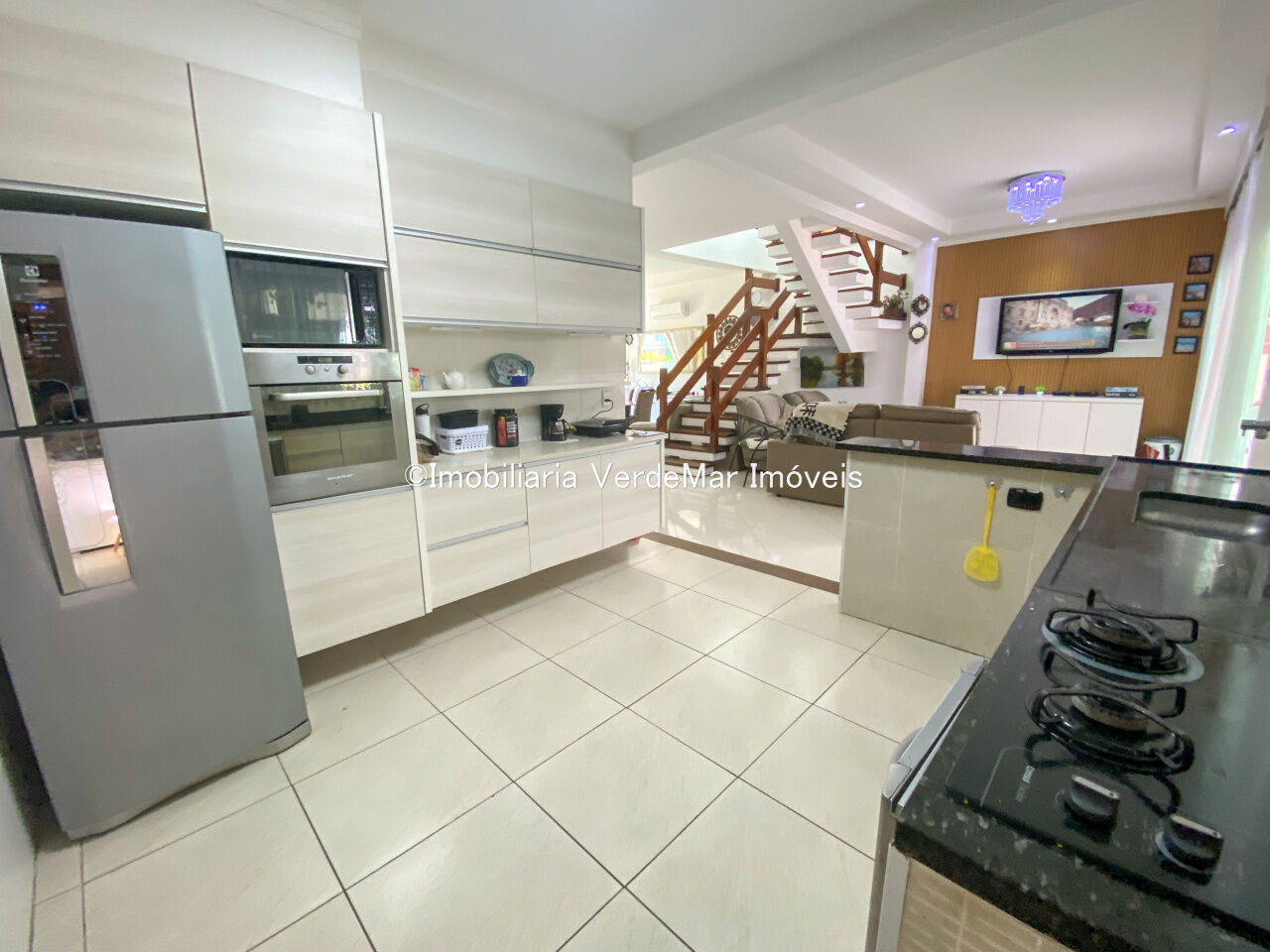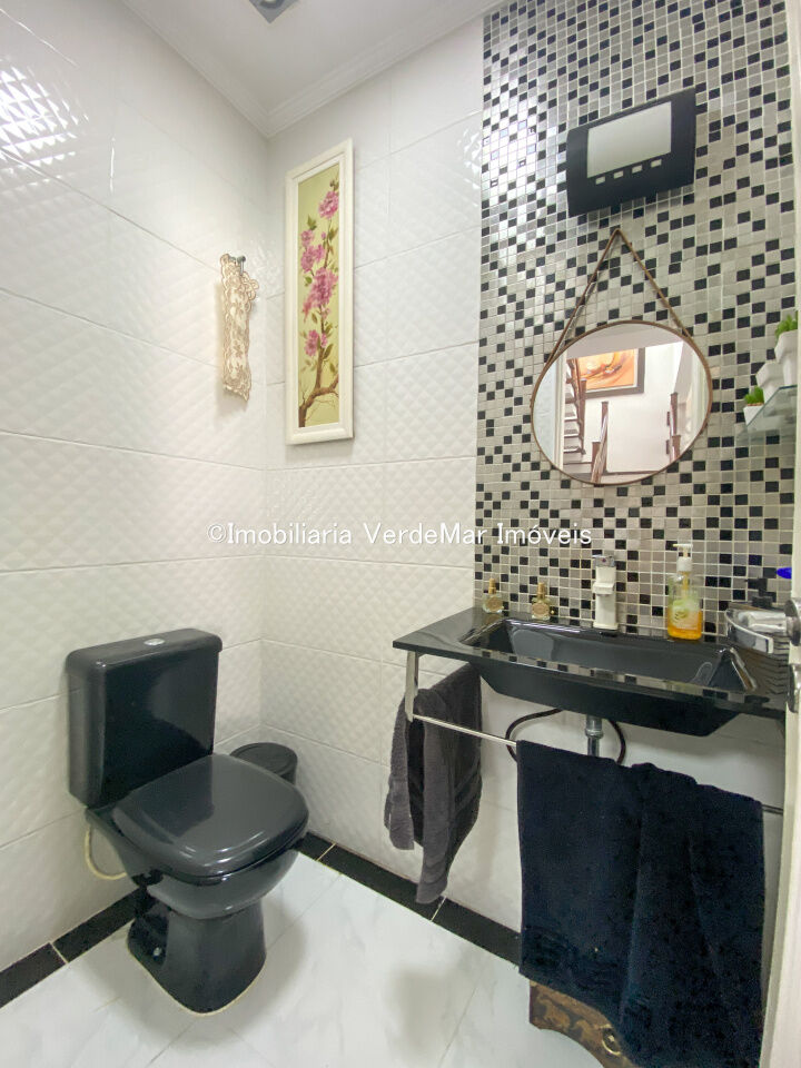 Sobrado à venda no Condomínio Pernambuco 2 na praia de Pernambuco em Guarujá, casa com 4 suítes, todas com ar condicionado, sala para 2 ambientes, cozinha planejada, 5 banheiros, lavabo, área de serviço e dependência de empregada.