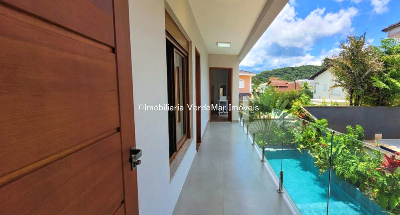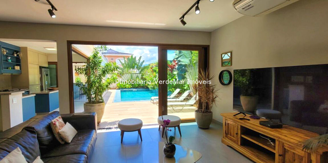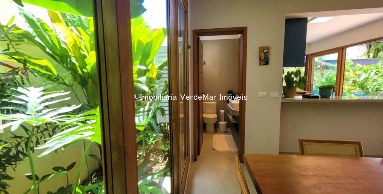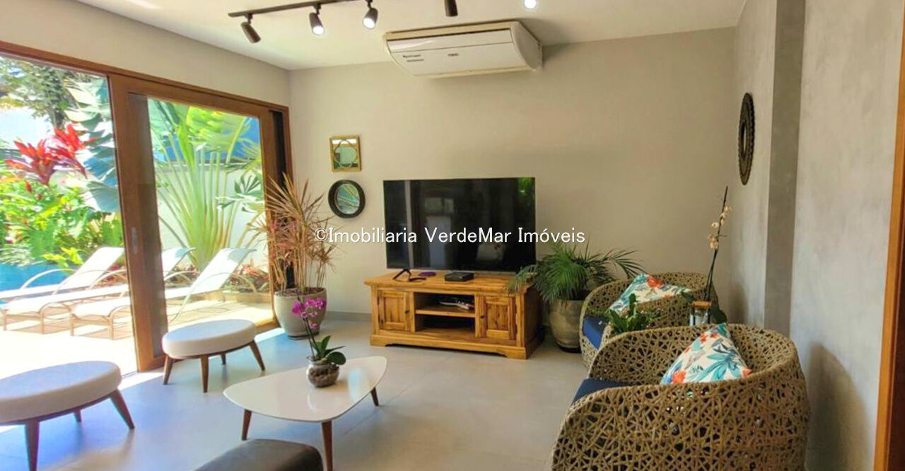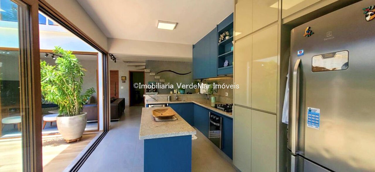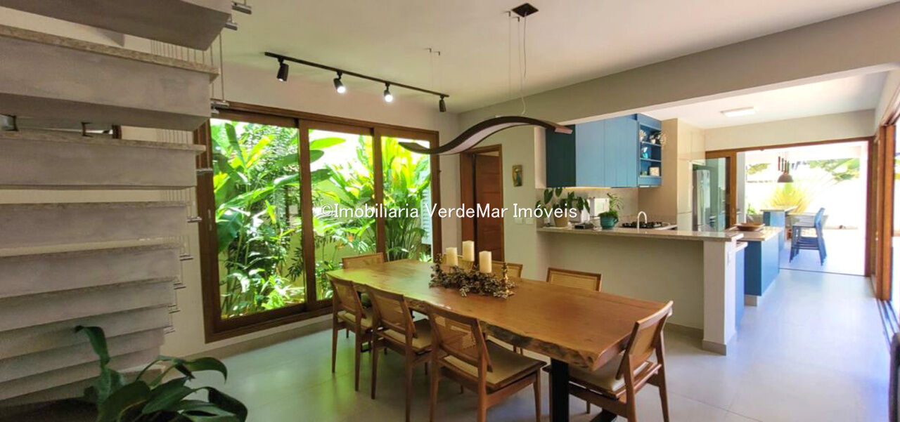 Sobrado com arquitetura contemporânea à venda no Condomínio Pernambuco 2 na praia de Pernambuco em Guarujá, casa com 5 suítes, todas com ar condicionado, sala para 2 ambientes e varanda integrada, cozinha planejada, 6 banheiros, lavabo e área de serviço.