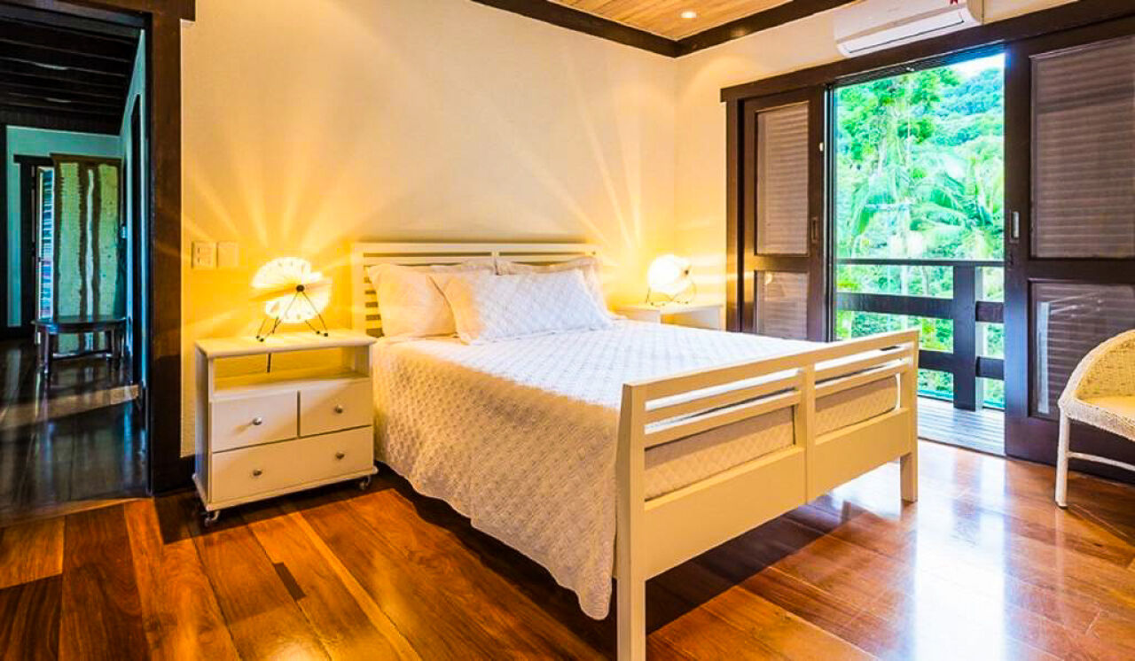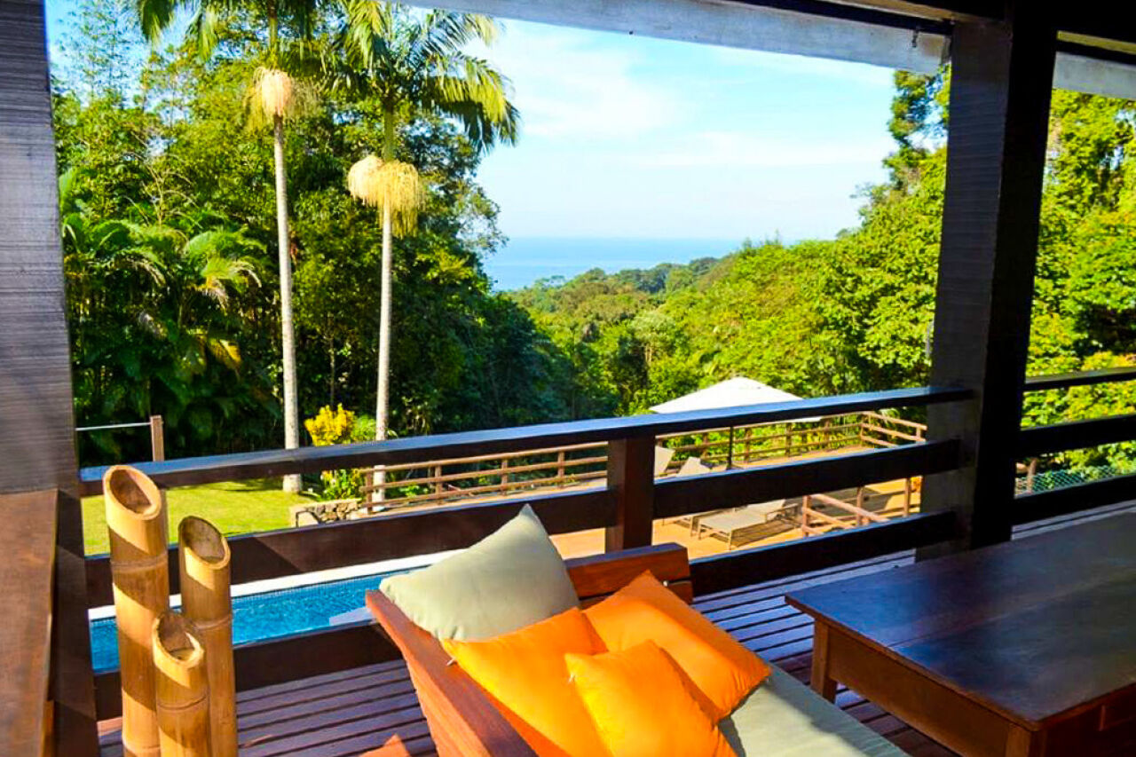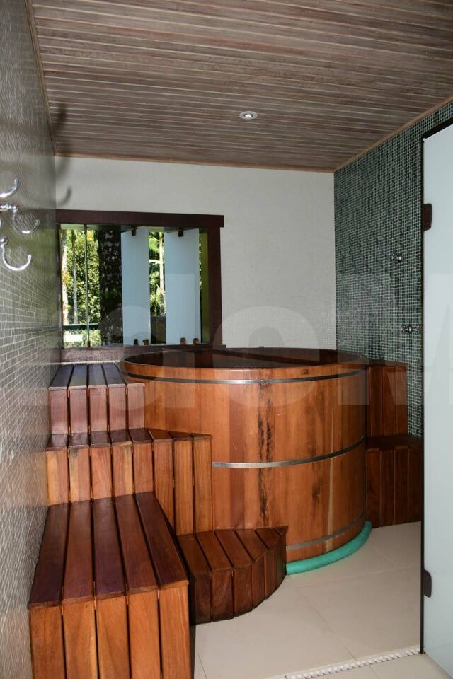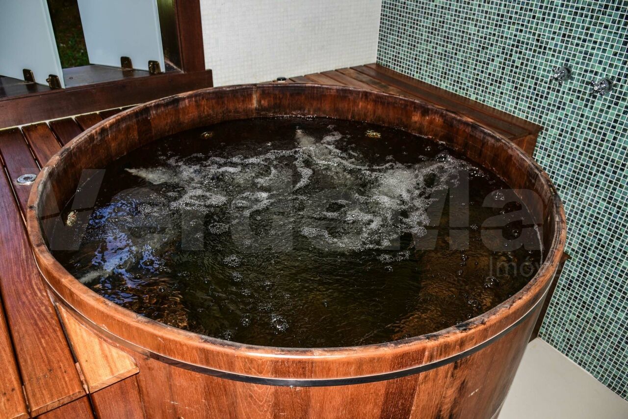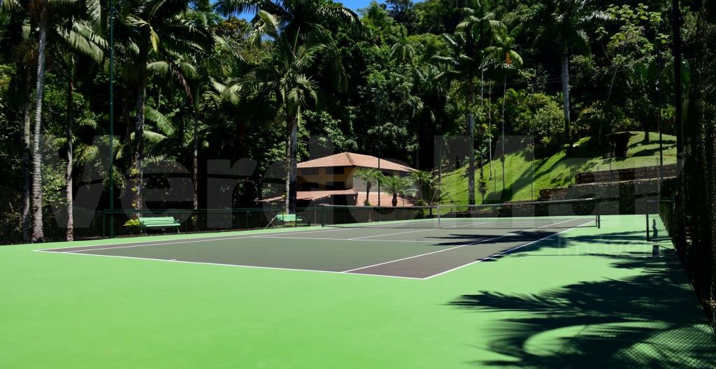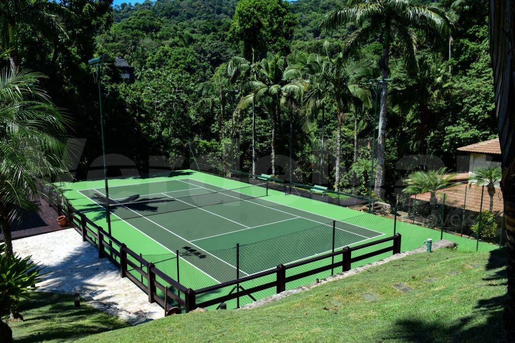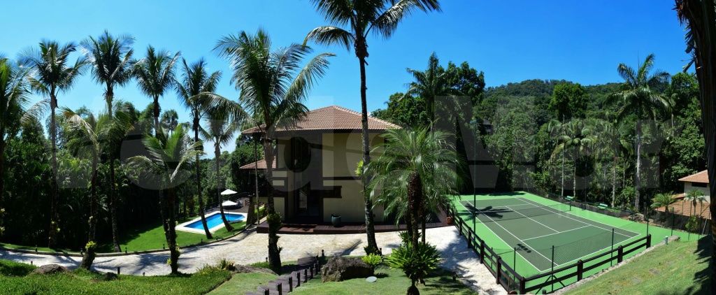 Lazer com amplo jardim e rico paisagismo, piscina e deck de madeira com vista para a mata Atlântica, ofurô/spa, quadra de tênis oficial, brinquedoteca e espaço gourmet com churrasqueira.