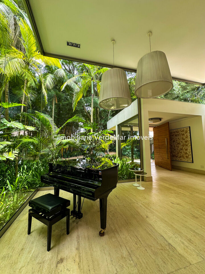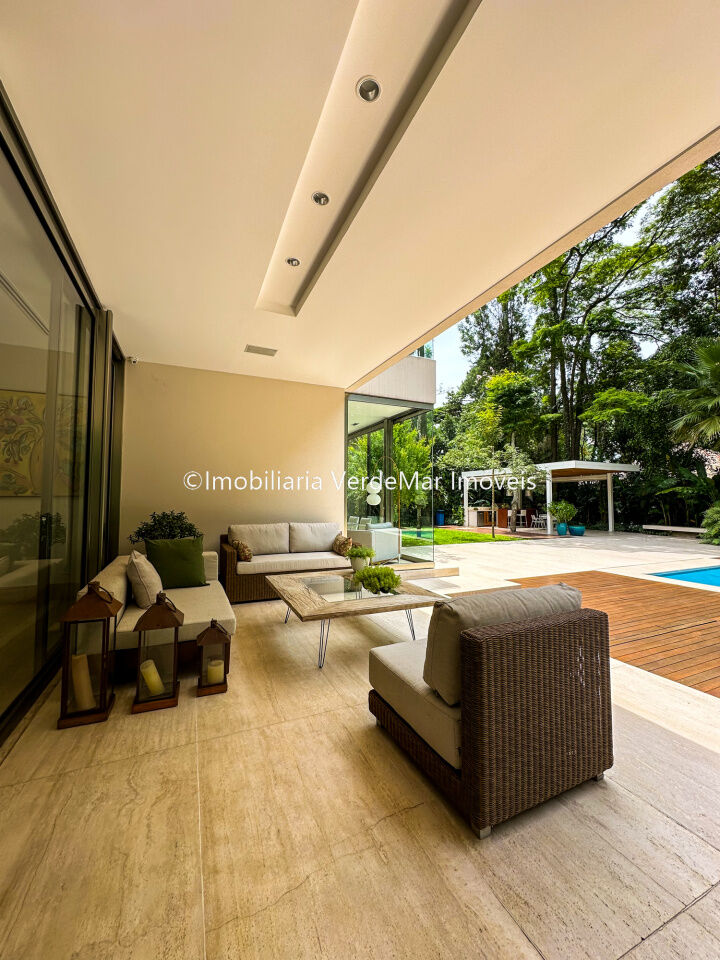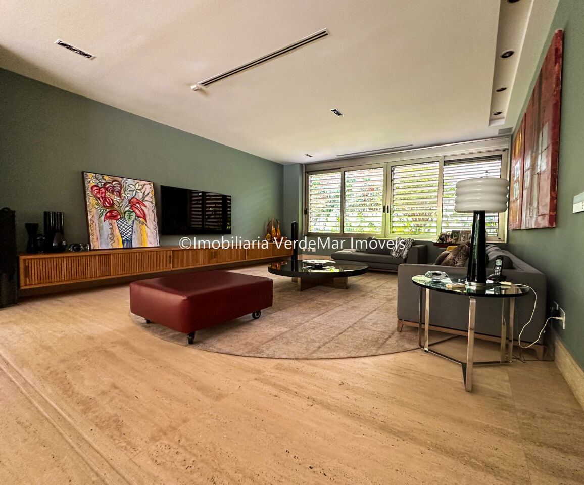 Com uma área útil de 968m² distribuídos em dois pavimentos, o living oferece flexibilidade para diversos ambientes, apresentando piso em travertino importado, esquadrias de excelente qualidade, sala de home, lavabo e escritório. Na ala íntima, encontram-se 4 espaçosas suítes com sacada, todas com vista para o exuberante jardim. A suíte master destaca-se por um espaçoso closet, banheiro duplo e uma relaxante hidromassagem, além de uma pequena sala íntima.