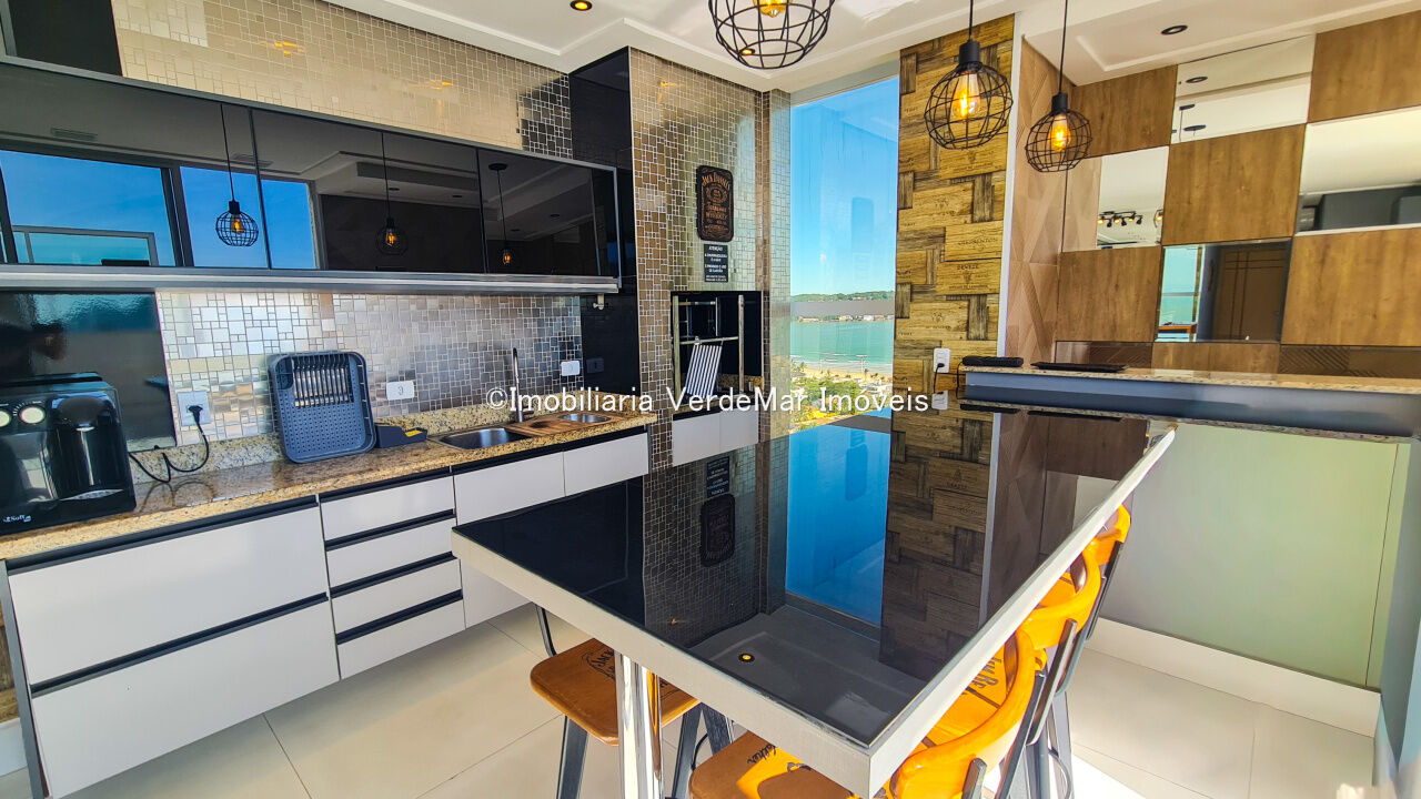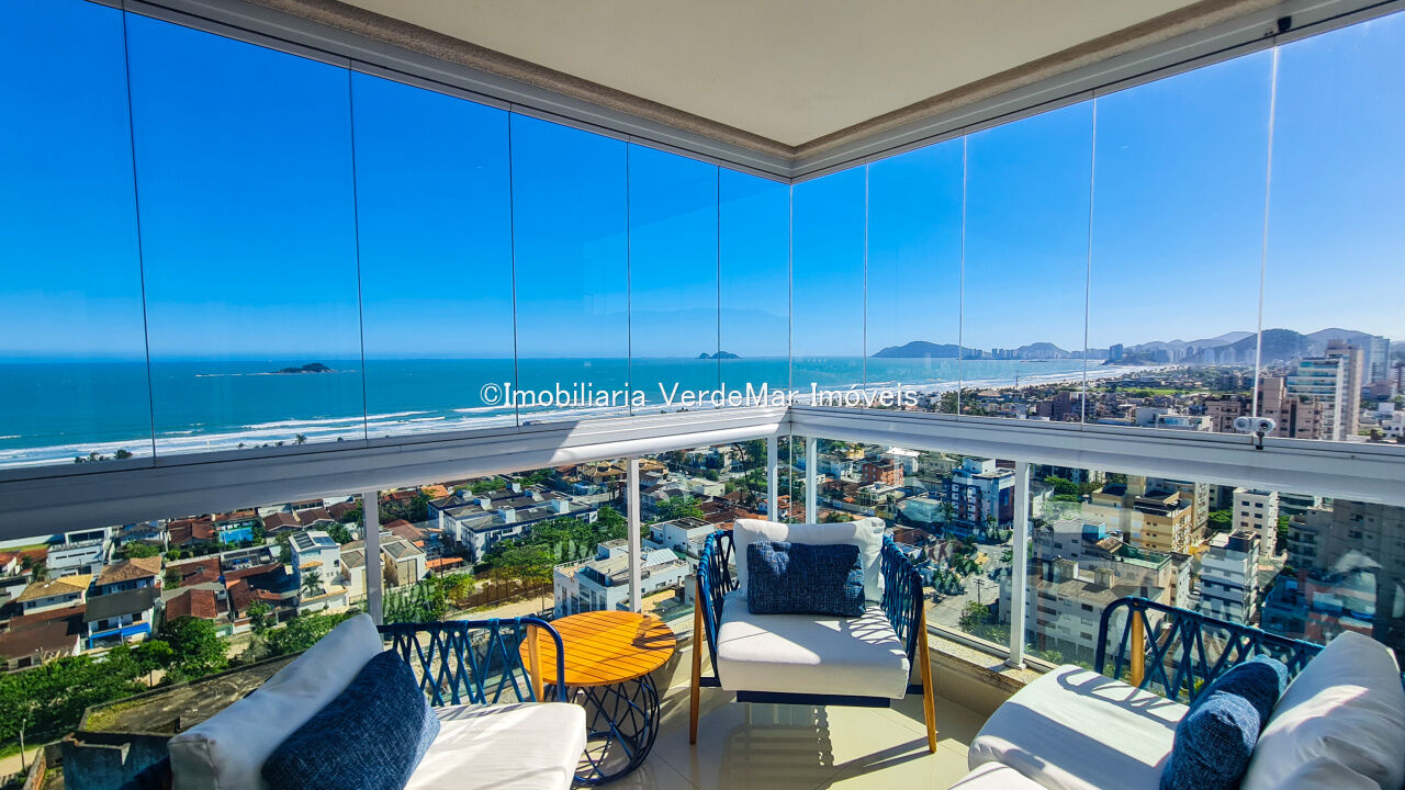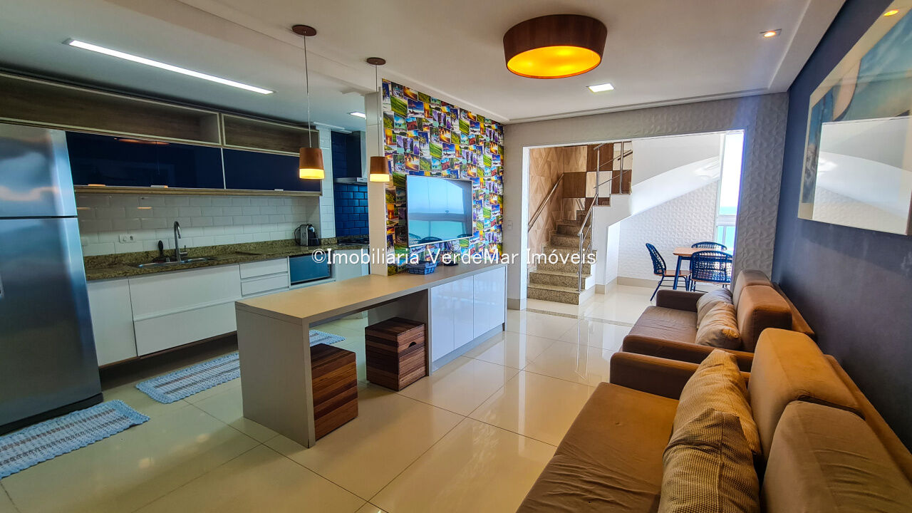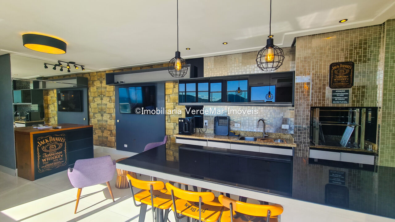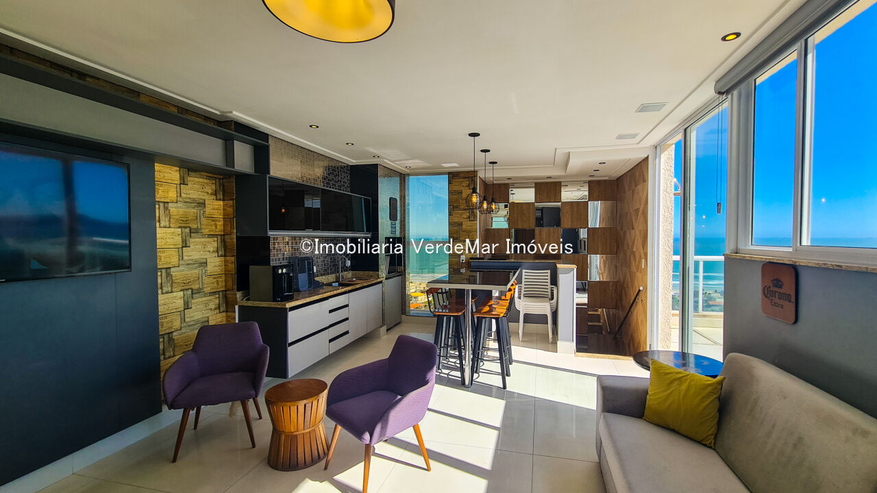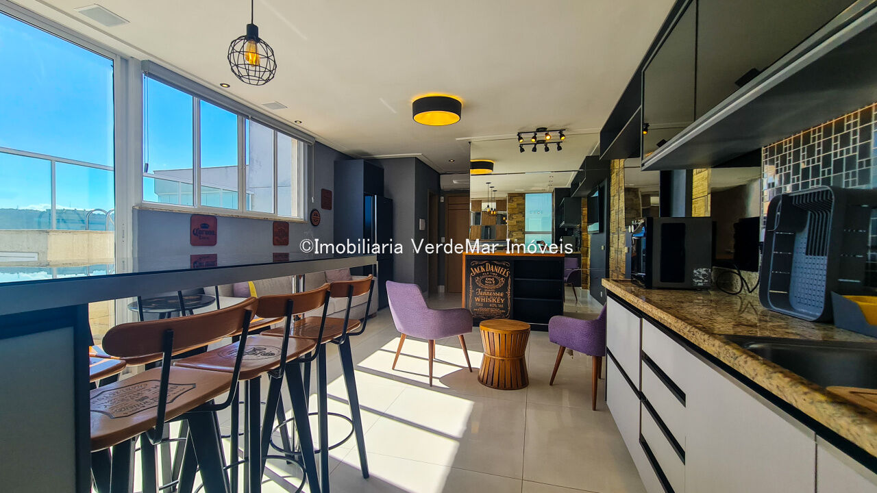 Cobertura no Panoramique 180 na praia da Enseada, mobiliado e decorado, com 02 suítes, 01 banheiro, sala para 02 ambientes com com varanda gourmet, cozinha americana planejada e área de serviços.