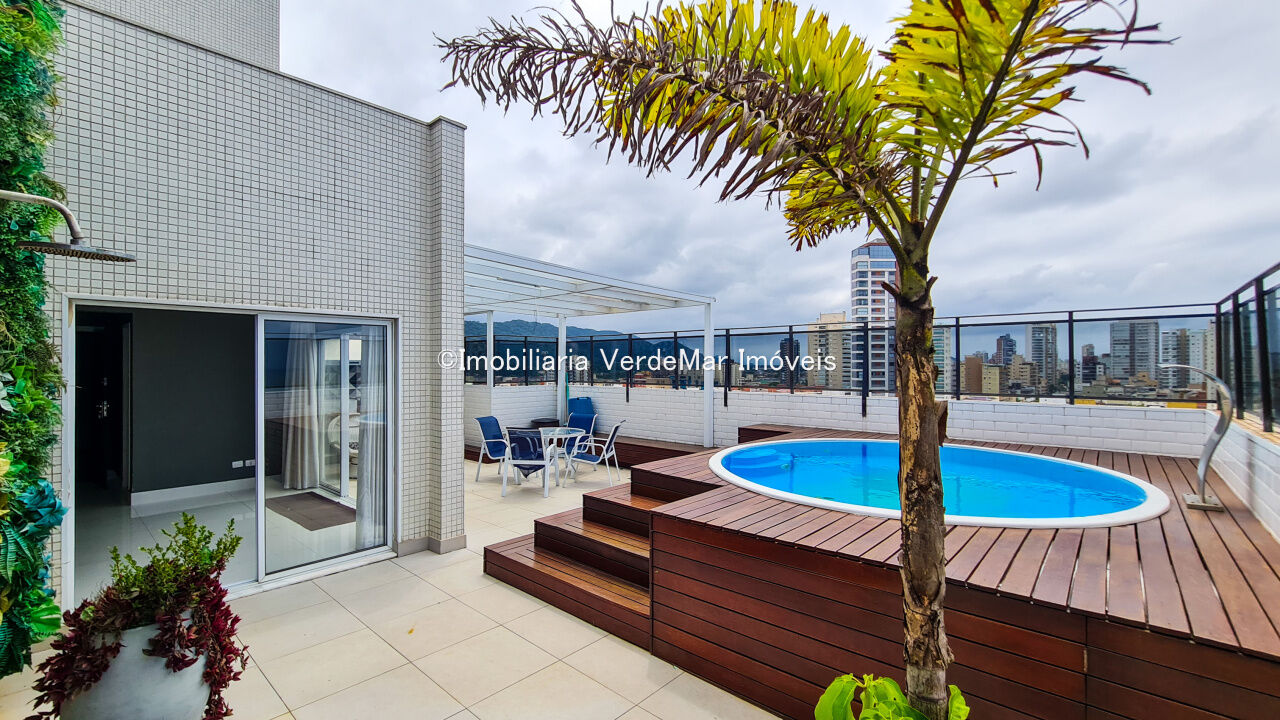 Cobertura Penthouse à venda na praia da Enseada no Guarujá, com 03 dormitórios sendo 01 suíte, sala para 02 ambientes com terraço gourmet, lavabo, cozinha planejada e lavanderia. Piscina privativa com deck e ducha.