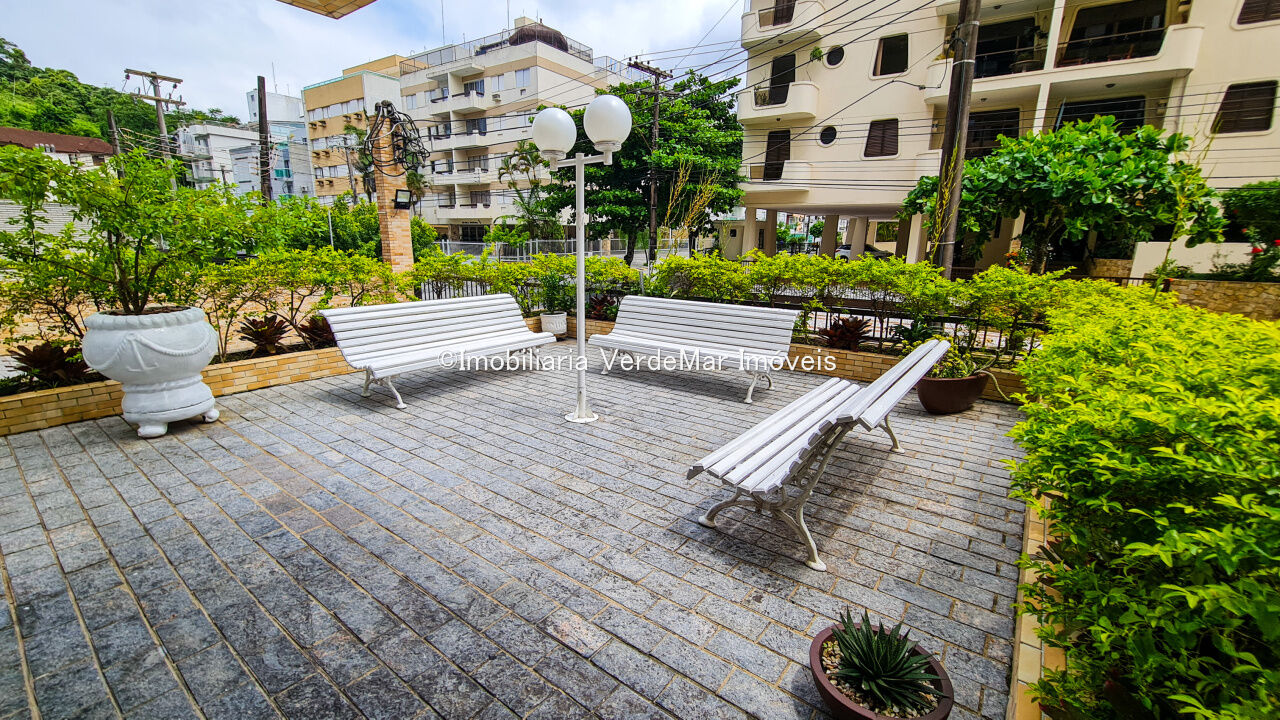 Prédio conta com jardim, piscina adulto e infantil, duchas, 2 saunas secas, salão de jogos, espaço gourmet com churrasqueira, portaria e monitoramento 24 horas, zeladoria e serviço de praia.