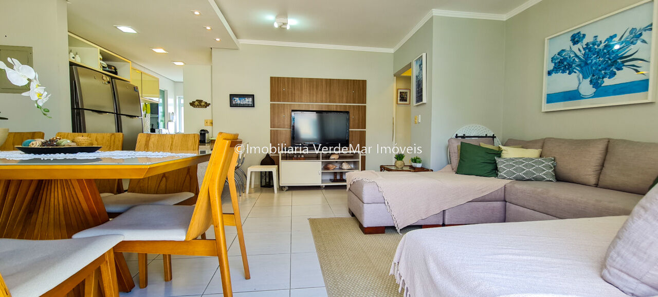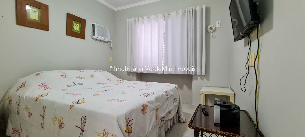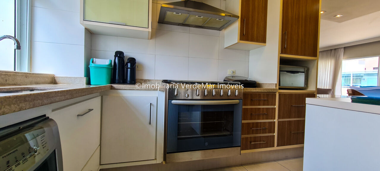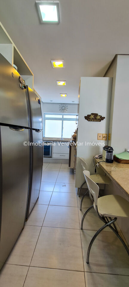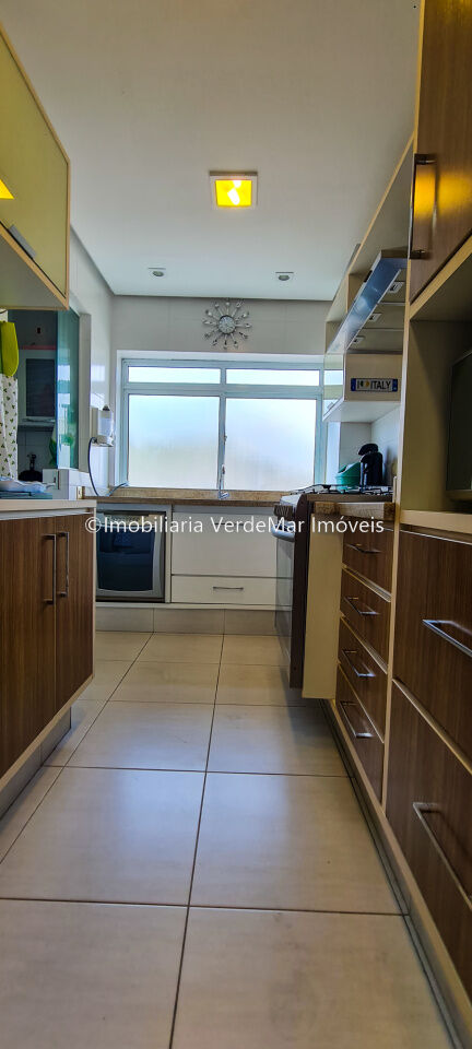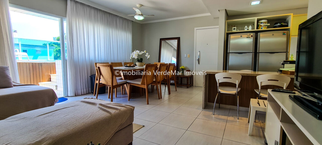Cobertura duplex à venda na praia da Enseada em Guarujá, com 05 dormitórios ao total sendo 02 suítes, todos com ventilador e ar condicionado, no primeiro piso sala para 02 ambientes integrada com cozinha planejada, área de serviços. No piso superior conta com sala de tv e terraço com piscina.