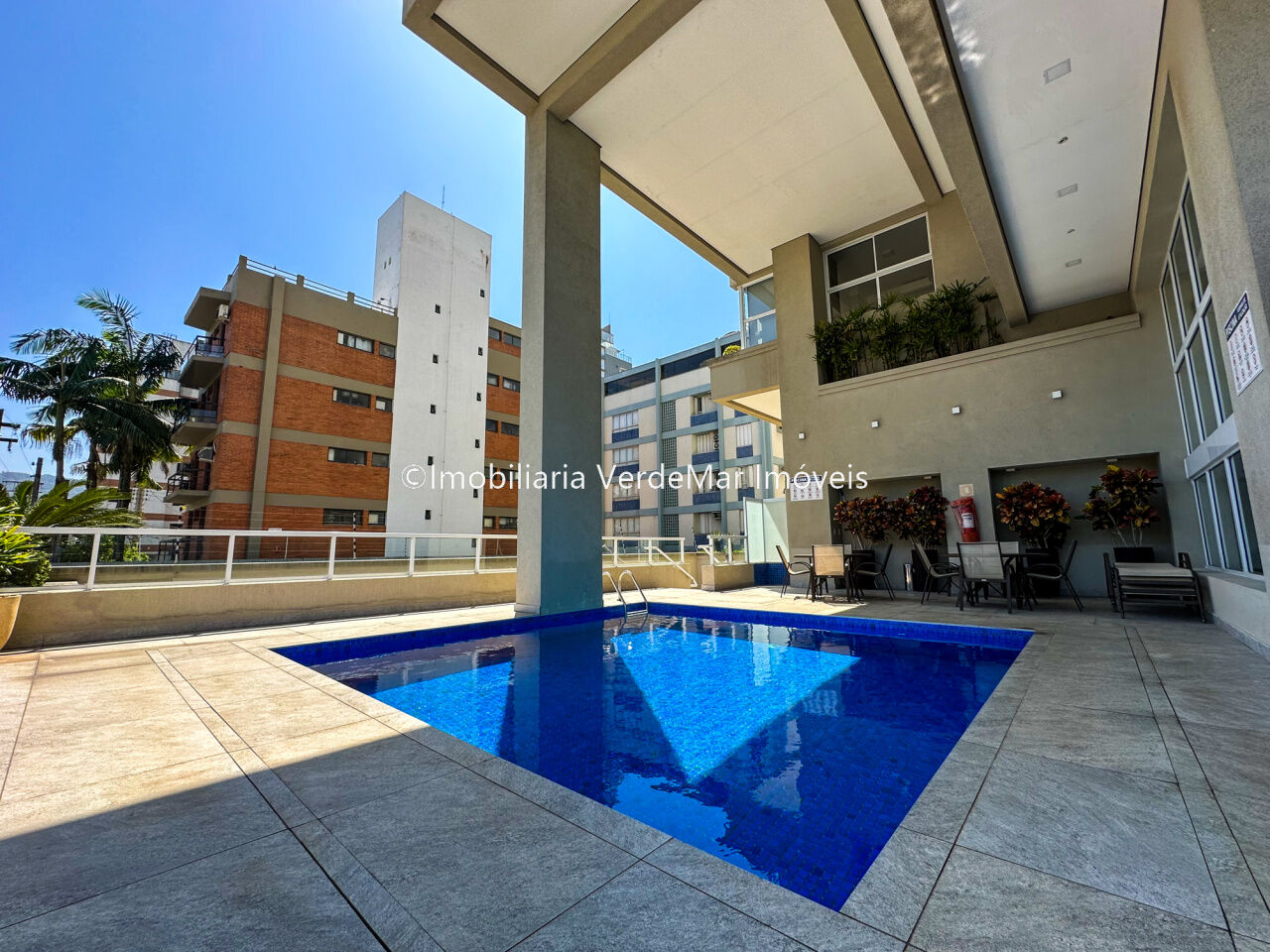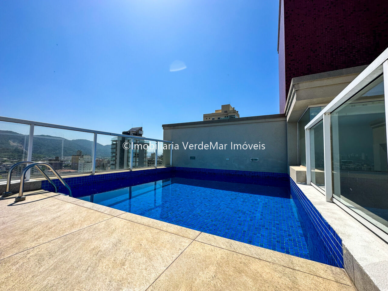 Lazer do prédio com piscina, sauna, salão de jogos, salão de festas com churrasqueira, cozinha de apoio com chopeira, academia e serviço de praia.
