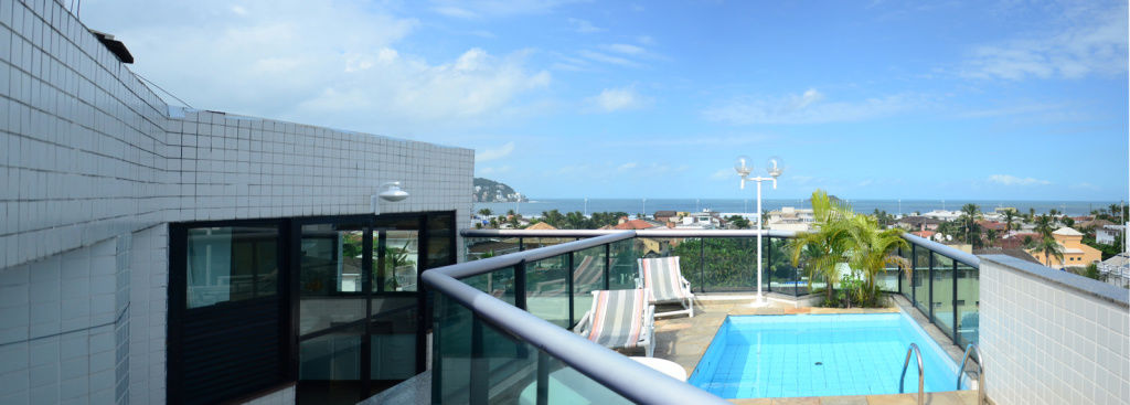 Cobertura duplex a 100 metros da praia da Enseada em Guarujá, com vista para o mar, com 04 suítes, sala 3 ambientes com varanda, cozinha planejada, lavabo, área de serviço e dependência de empregada. Lazer da cobertura com piscina e amplo espaço gourmet com churrasqueira.