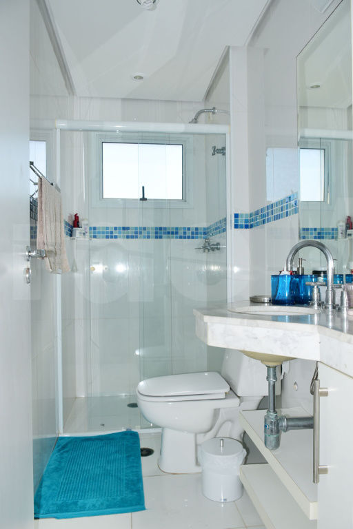 Lazer do prédio com piscina, deck molhado e cascata, saunas seca e úmida, quadra poliesportiva, brinquedoteca, salão de jogos e vídeo, salão de festas com churrasqueira e forno de pizza.