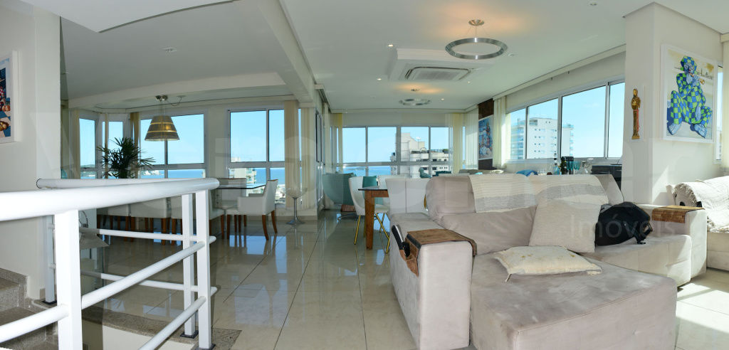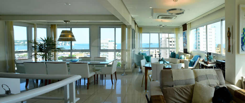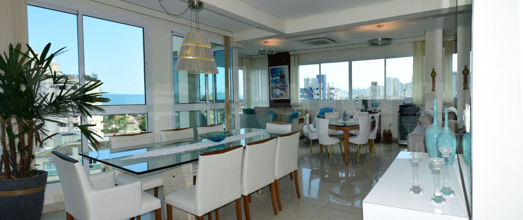 Cobertura a venda na praia da Enseada em Guarujá, vista para o mar, elevador privativo, 04 suítes, sala para 02 ambientes com sacada, sala de tv, cozinha planejada, lavanderia e área de serviço. Lazer da cobertura com piscina, sauna e espaço gourmet com churrasqueira.