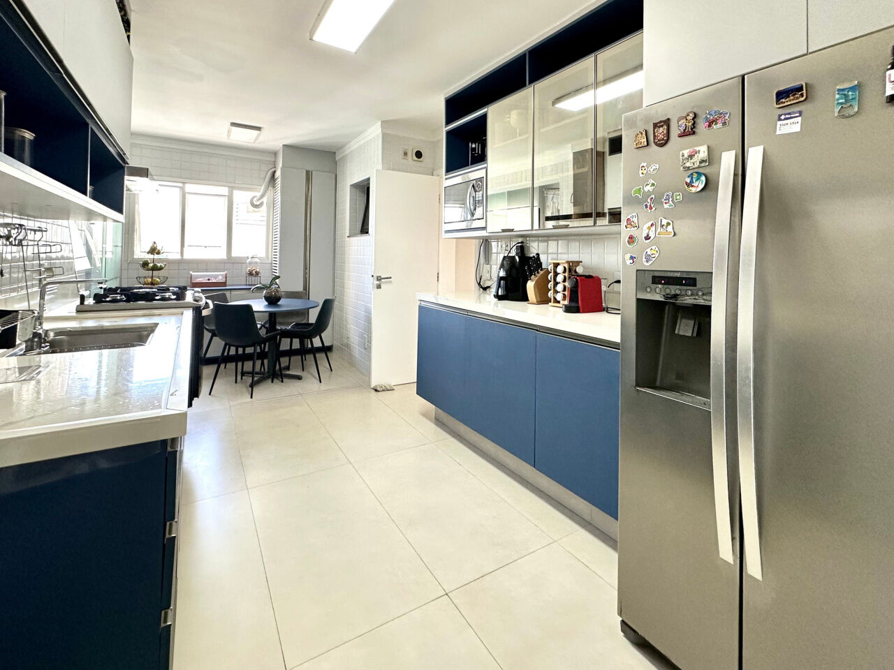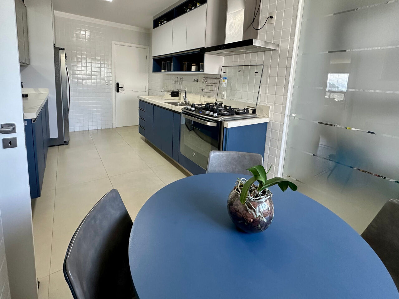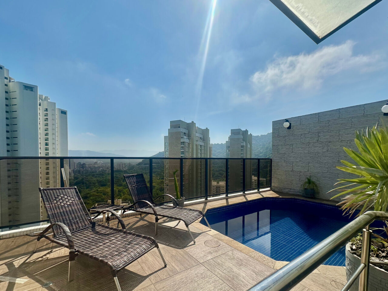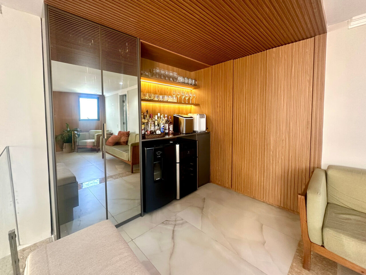 Cobertura duplex reformada no Condomínio Costão das Tartarugas na Praia da Enseada em Guarujá, vista para o mar, com 4 suítes todas com varanda, sala para 3 ambientes com ampla sacada, lavabo, cozinha planejada, área de serviço e dependência de empregada. Lazer da cobertura com sauna, piscina e churrasqueira.
