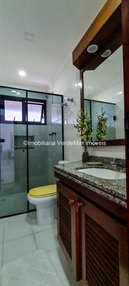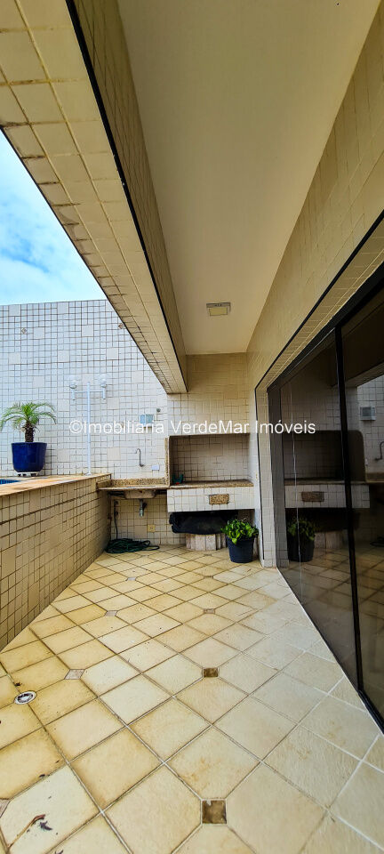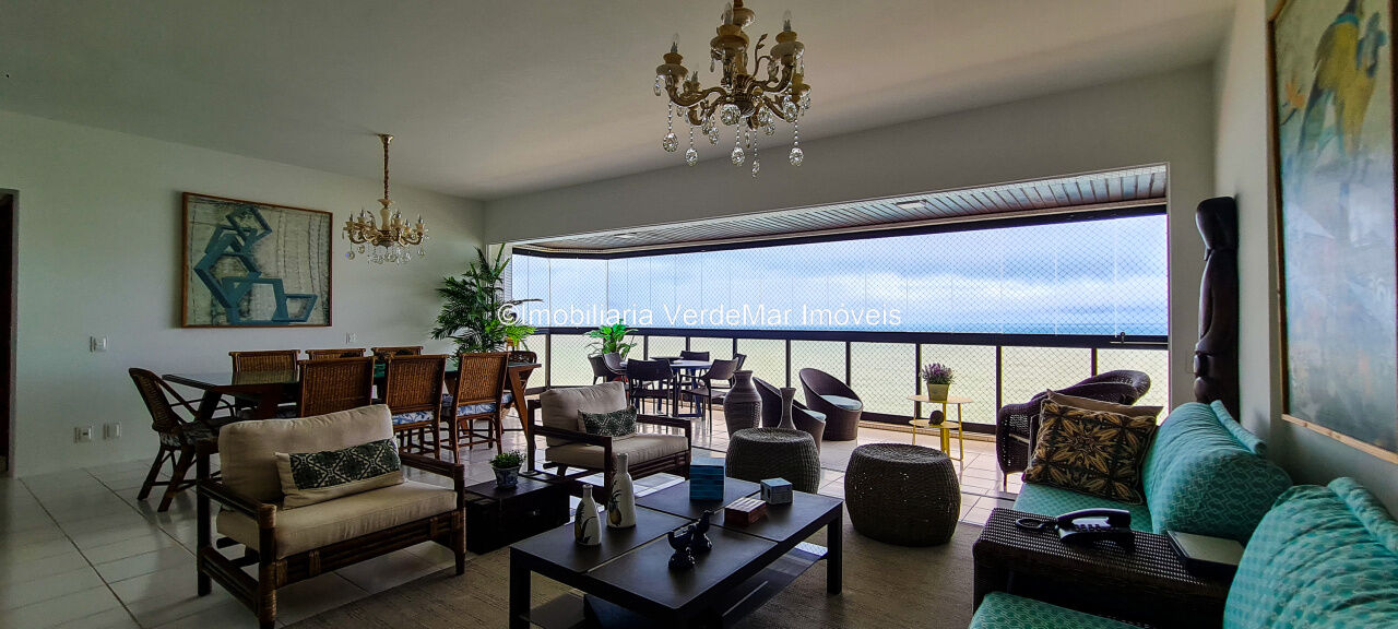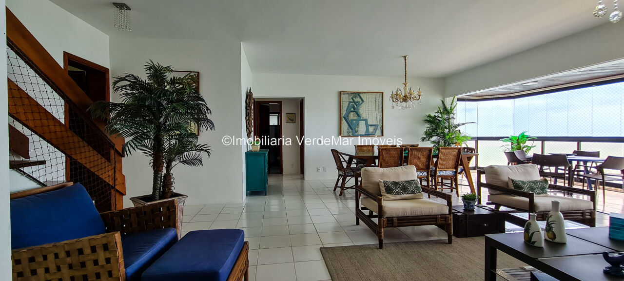 Cobertura duplex reformada no Condomínio Costão das Tartarugas na Praia da Enseada em Guarujá, vista para o mar, com 4 suítes todas com varanda, sala para 3 ambientes com ampla sacada, lavabo, cozinha planejada, área de serviço e dependência de empregada. Lazer da cobertura com sauna, piscina e churrasqueira.