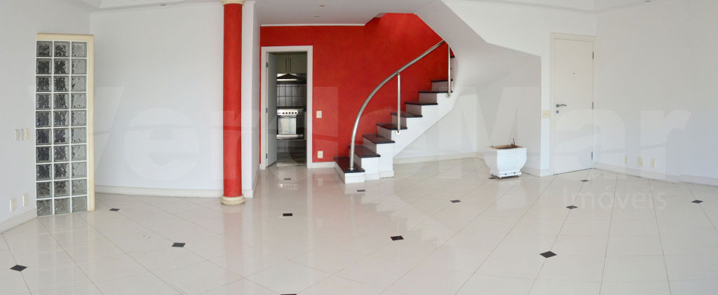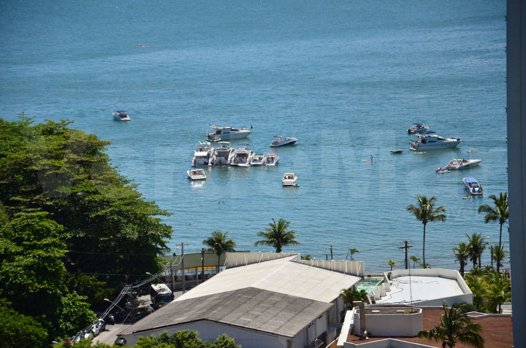 Cobertura duplex reformada no Condomínio Costão das Tartarugas na Praia da Enseada em Guarujá, vista para o mar, com 4 suítes todas com varanda, sala para 3 ambientes com ampla sacada, lavabo, cozinha planejada, área de serviço e dependência de empregada. Lazer da cobertura com sauna, piscina e churrasqueira.