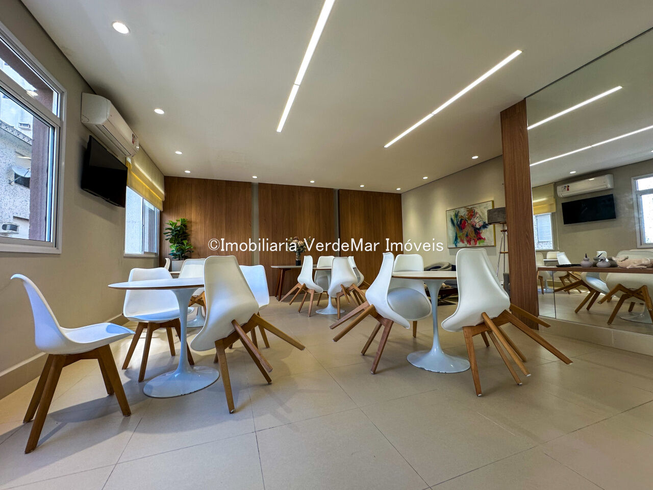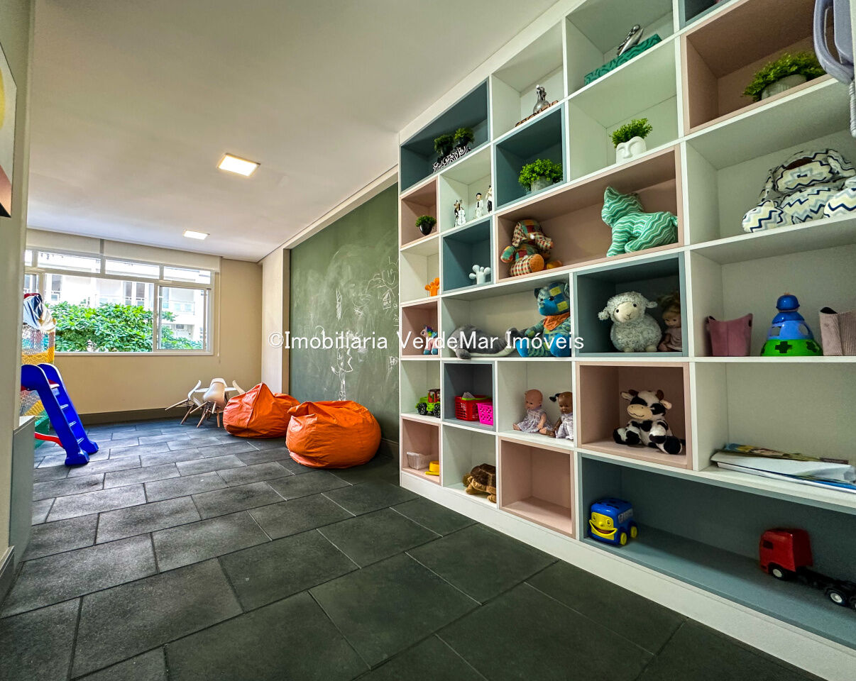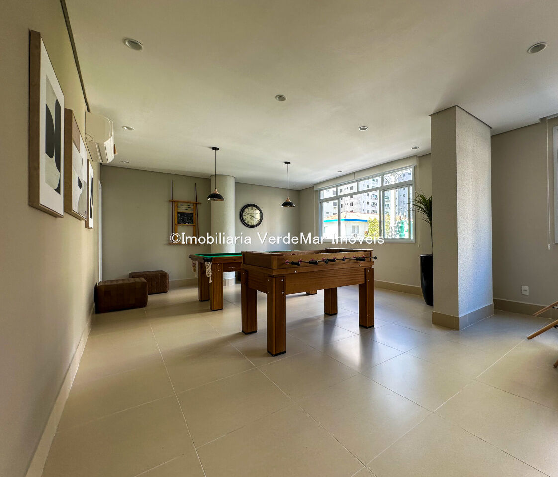Lazer do condomínio conta com piscina adulto e infantil com deck molhado, academia, sauna, brinquedoteca, playground, salão de jogos, salão de festas, além de serviço de praia, zeladoria e portaria eletrônica 24 horas.