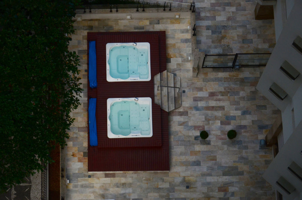 Lazer do prédio com piscina, ofuro/spa, salão de festas, salão de jogos, sauna, academia e serviço de praia.