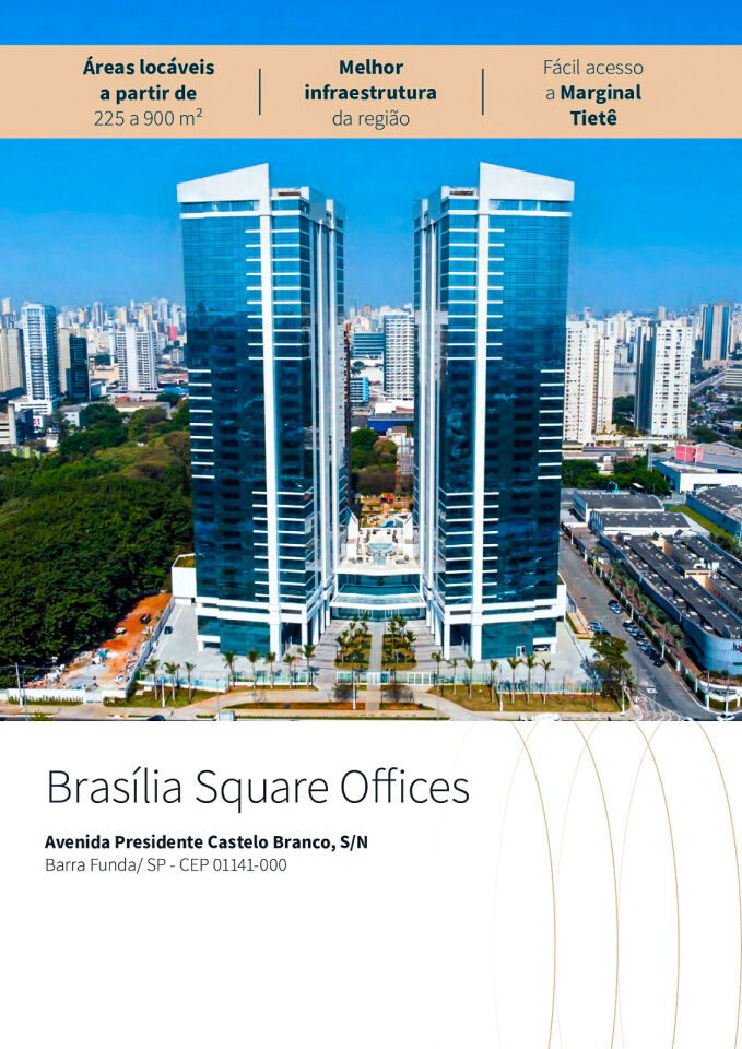 Qualidade e elegância em um dos endereços mais valorizados da região - o Brasília Square Offices possui localização privilegiada, na Av. Presidente Castelo Branco (Marginal do Rio Tietê), entre as pontes do Limão e da Casa Verde. Está ligado a uma excelente malha de transporte da cidade, oferecendo qualidade e comodidade para seus usuários, uma ligação com as principais vias de acesso ao aeroporto de Guarulhos, Campo de Marte, e as rodovias que atendem o litoral e interior do estado de São Paulo.