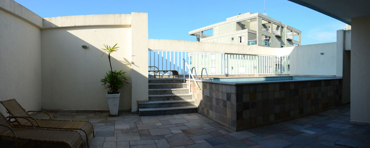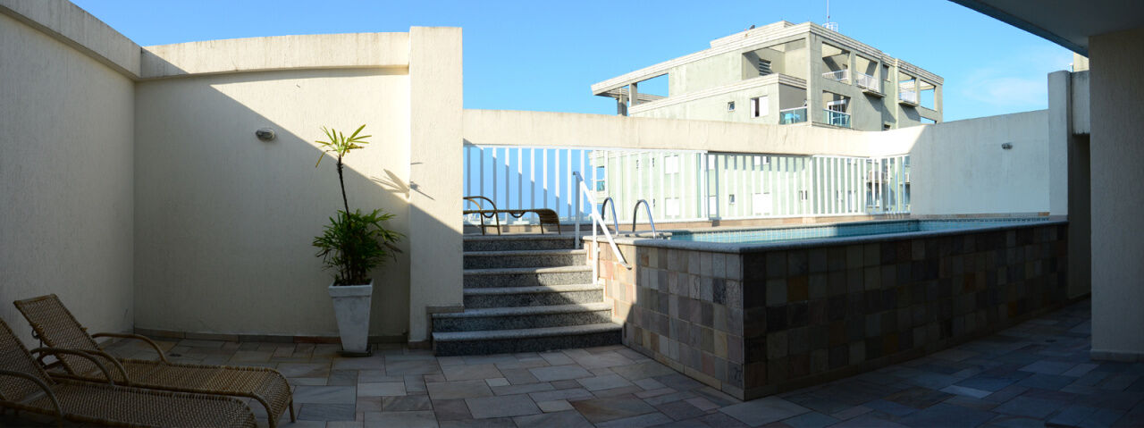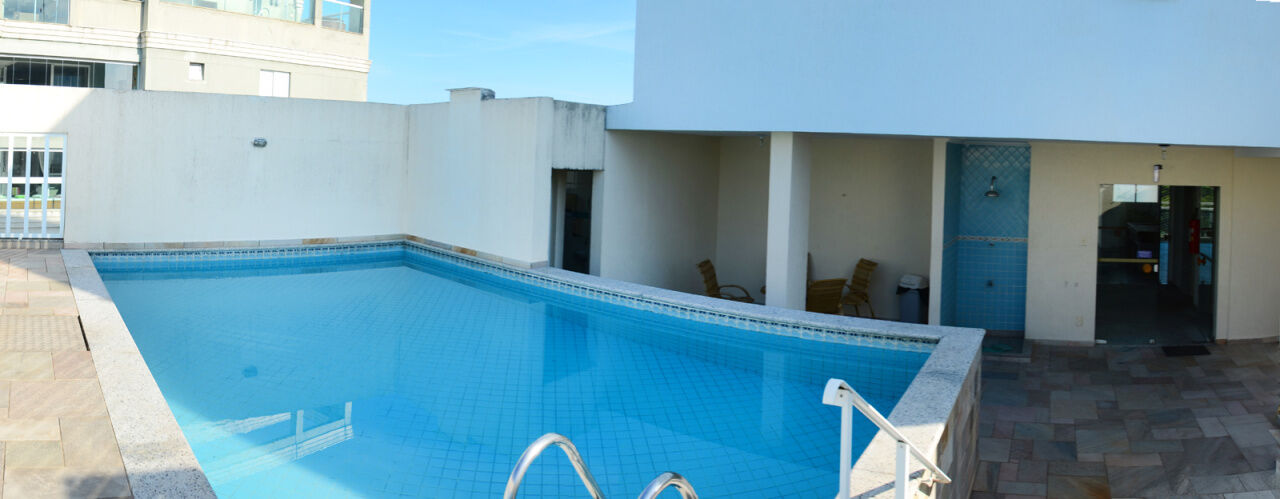 Lazer do prédio conta com piscina, churrasqueira, salão de jogos e playground, portaria 24 horas com monitoramento e serviço de praia.