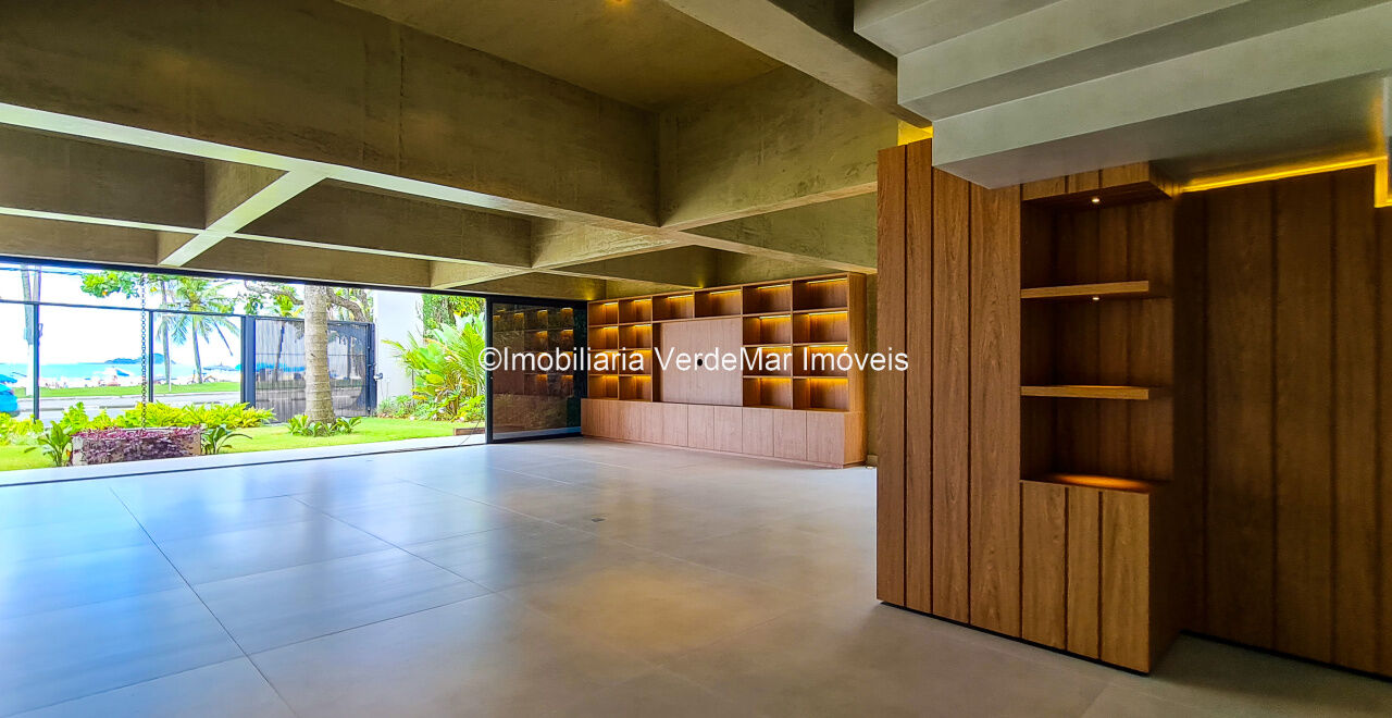 Mansão moderna À VENDA frente ao mar na praia da Enseada em Guarujá, inspirada nos projetos de Oscar Niemeyer com fachada em estilo gaivota, todos os ambientes climatizados, com 05 suítes avarandadas sendo a suíte máster com closet e hidromassagem, amplo living para 04 ambientes com vista ao mar, adega climatizada para 150 garrafas, lavabo, sala de tv no piso superior com vista panorâmica, rouparia, cozinha planejada, lavanderia e casa de caseiros completa, entrada pela frente mar e pelos fundos com acesso independente.