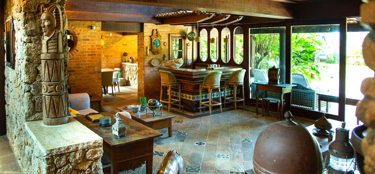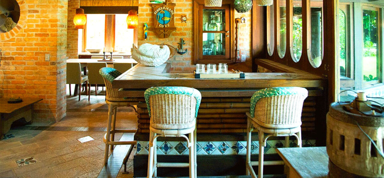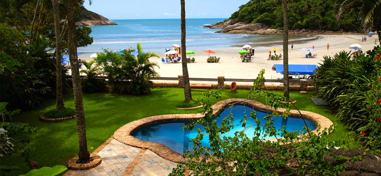 Lazer com amplo jardim e saída para praia, piscina com deck e bar molhado e espaço gourmet com churrasqueira.