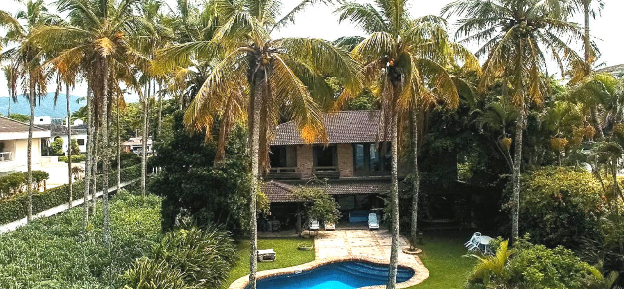 Mansão pé na areia na praia do Pernambuco em Guarujá, mobiliada, com 4 suítes, sala para 03 ambientes com lareira e ampla varanda, vista para o mar, lavabo, copa e cozinha com armários, despensa, lavanderia e casa de caseiro.