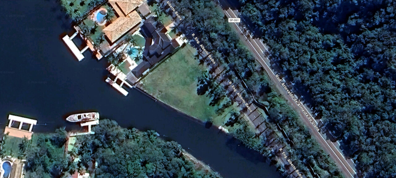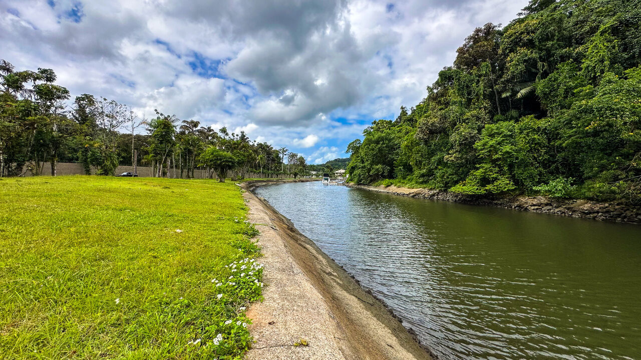 Terreno no Residencial Marina Guarujá no canal de Bertioga, de frente para o canal, lote à venda em área plana..