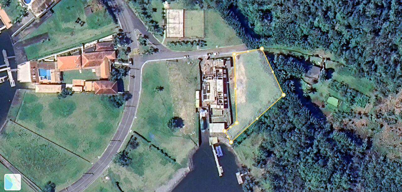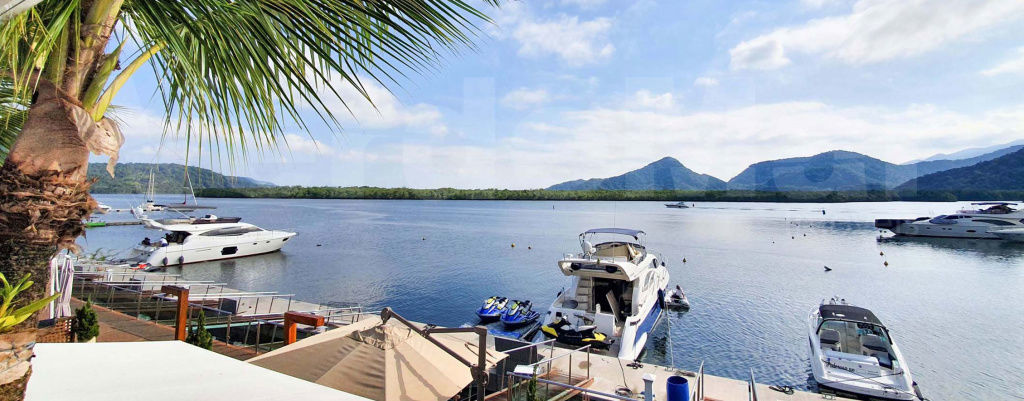 Terreno com projeto À VENDA no Condomínio Residencial Marina Guarujá no Canal de Bertioga, rampa e píer para barco.