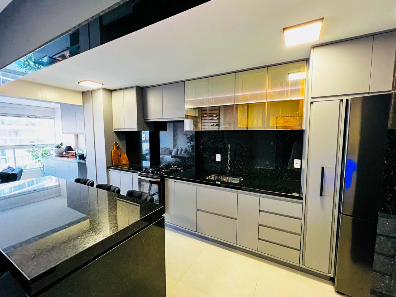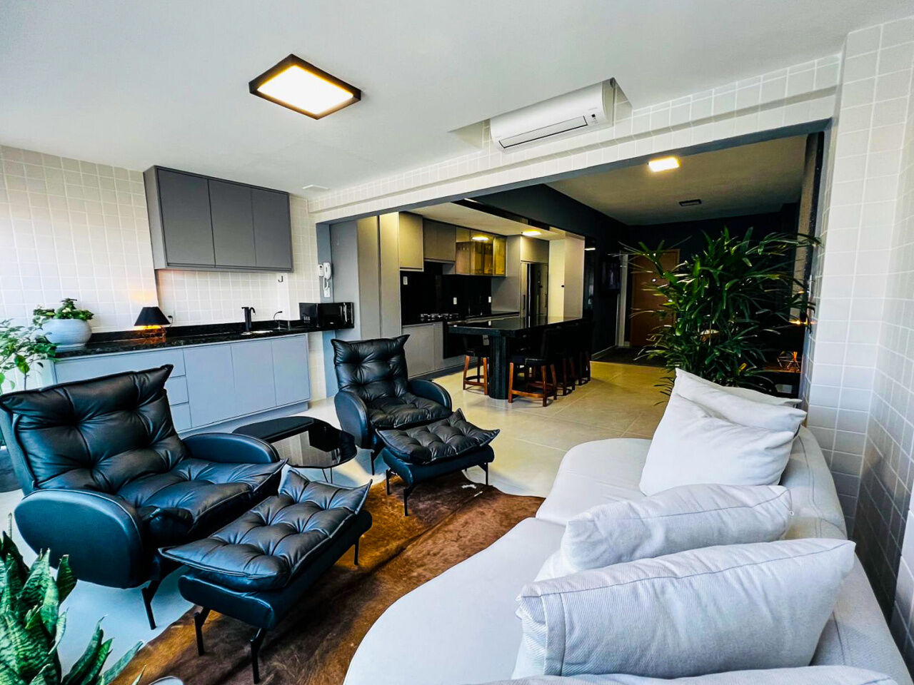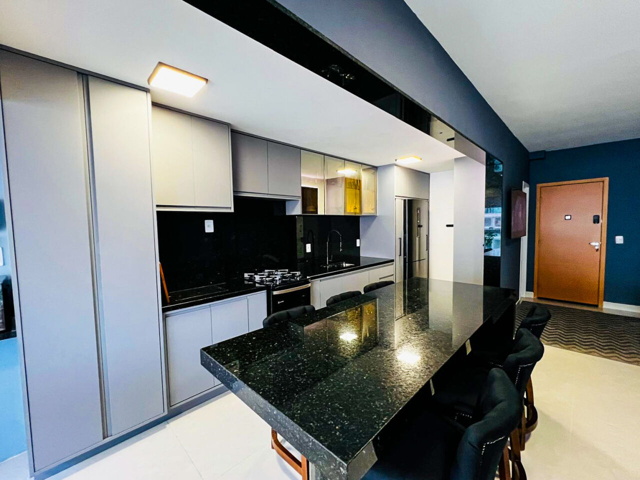 Apartamento mobiliado e decorado à venda no Residencial Guarujá Beach na praia das Astúrias, com 3 dormitórios (1 suíte) mais 1 banheiro, 1 sala ampla integrada, 1 cozinha, 1 terraço gourmet, 1 área de serviço, 2 vagas de garagem. O apartamento possui vista parcial permanente para a praia das Astúrias da varanda Gourmet.