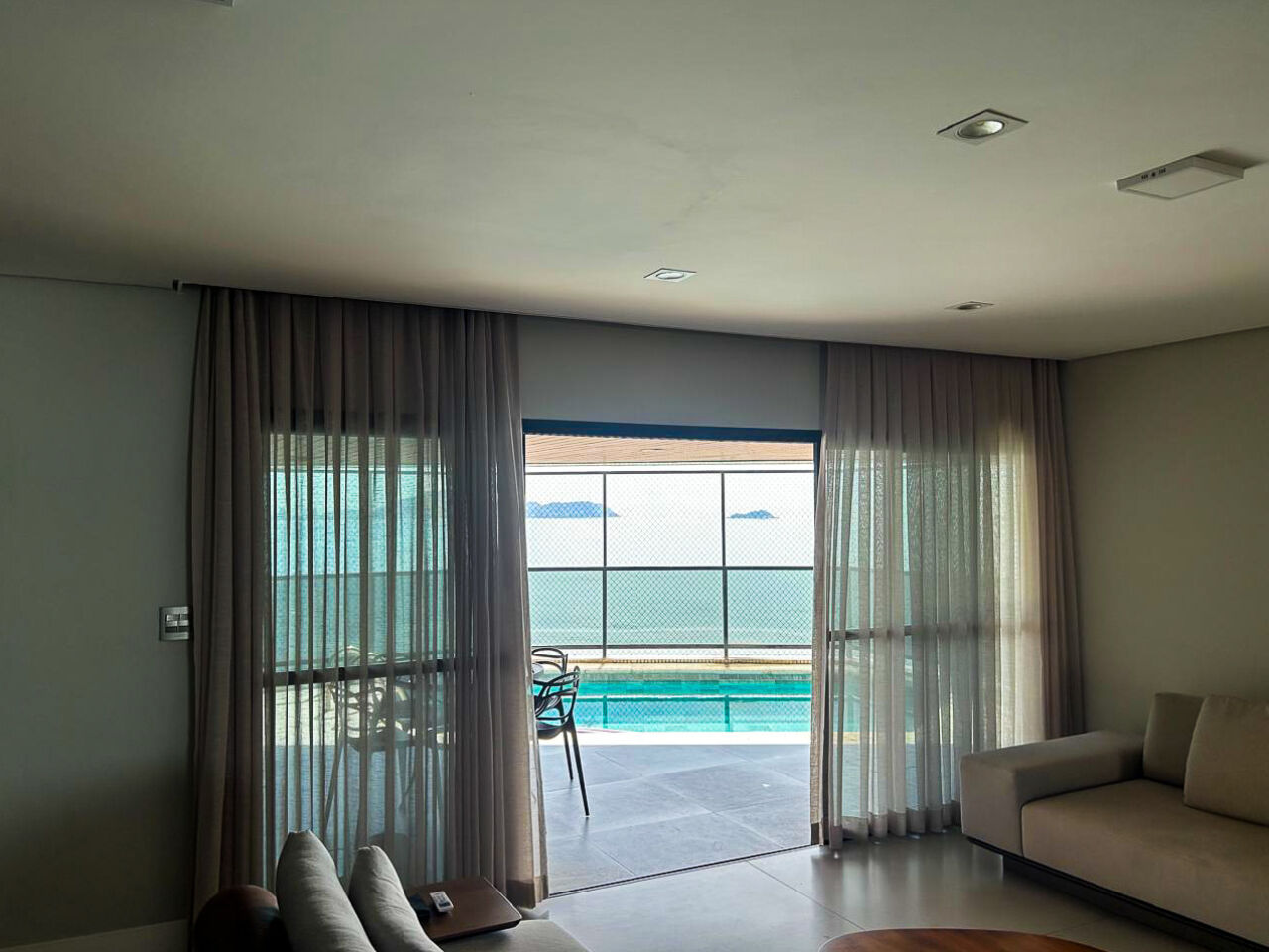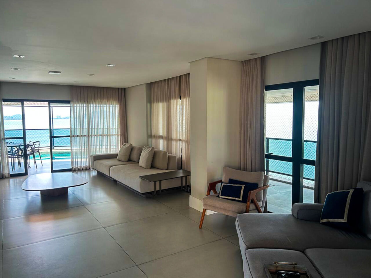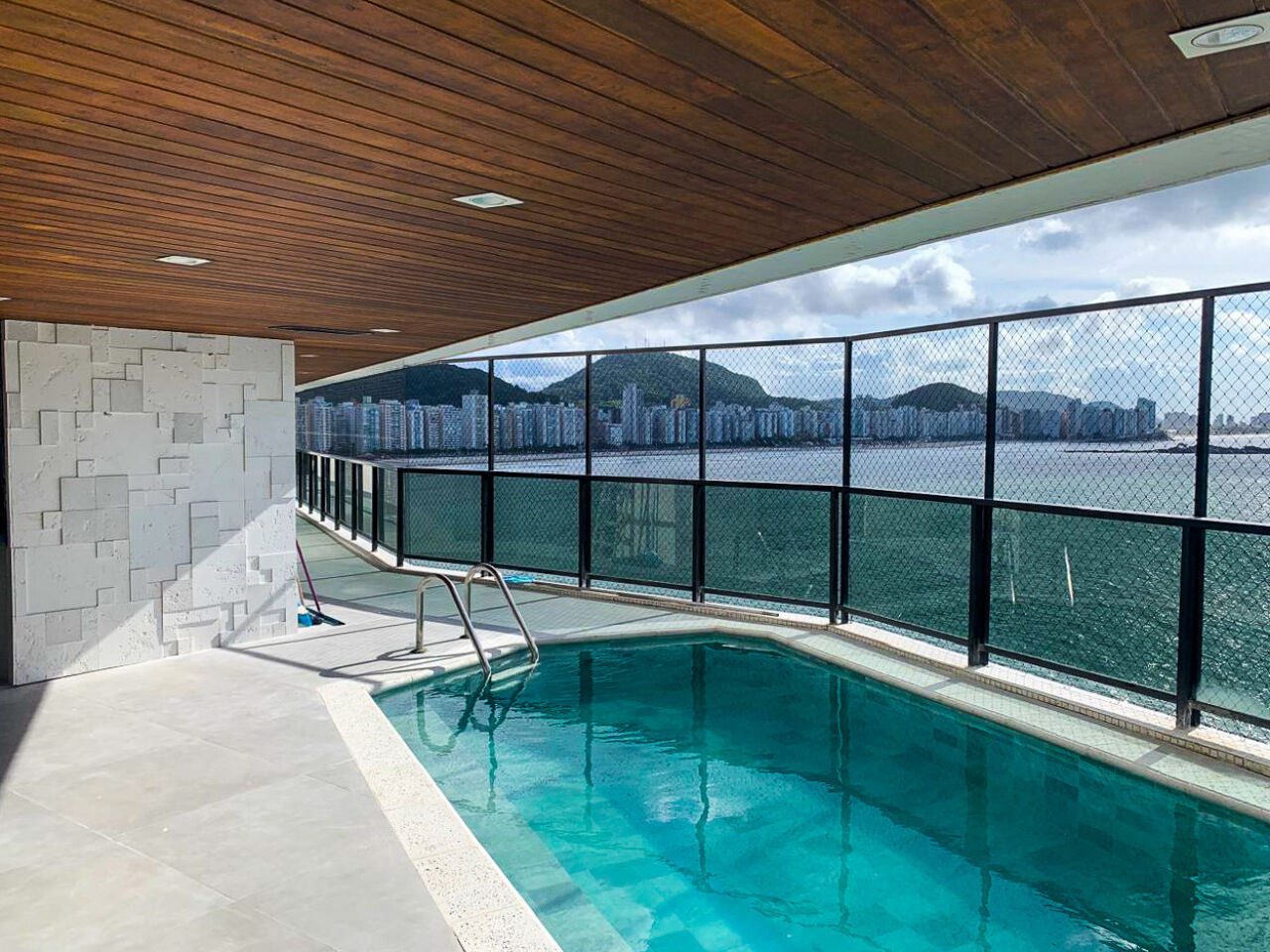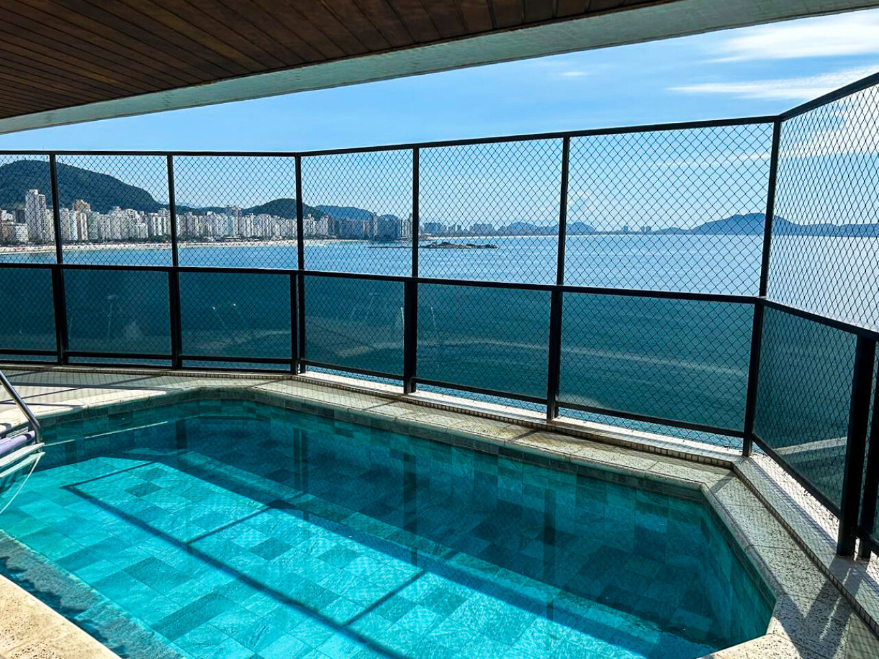 Apartamento na praia das Astúrias em Guarujá, vista total par ao mar, mobiliado e decorado, com 04 suítes sendo 01 máster com hidro, sala para 03 ambientes, ampla sacada envidraçada e com piscina, sauna no apartamento, copa/cozinha, despensa, lavanderia e suíte de empregada.