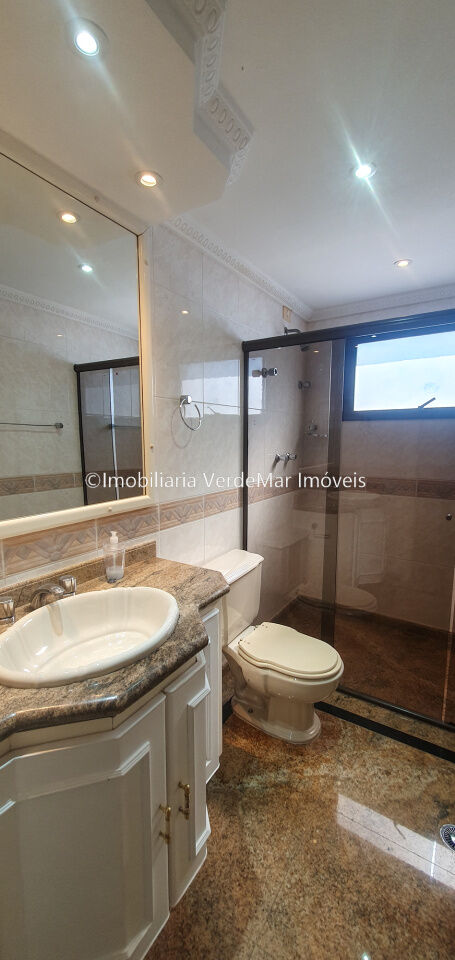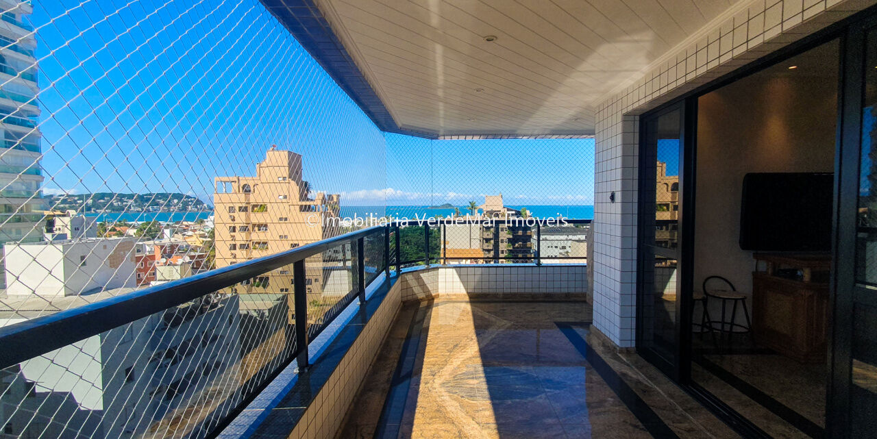 Apartamento à 450 metros da praia da Enseada em Guarujá, vista para o mar, com 3 suítes, sala para 02 ambientes com sacada gourmet, cozinha planejada, lavabo e área de serviço.