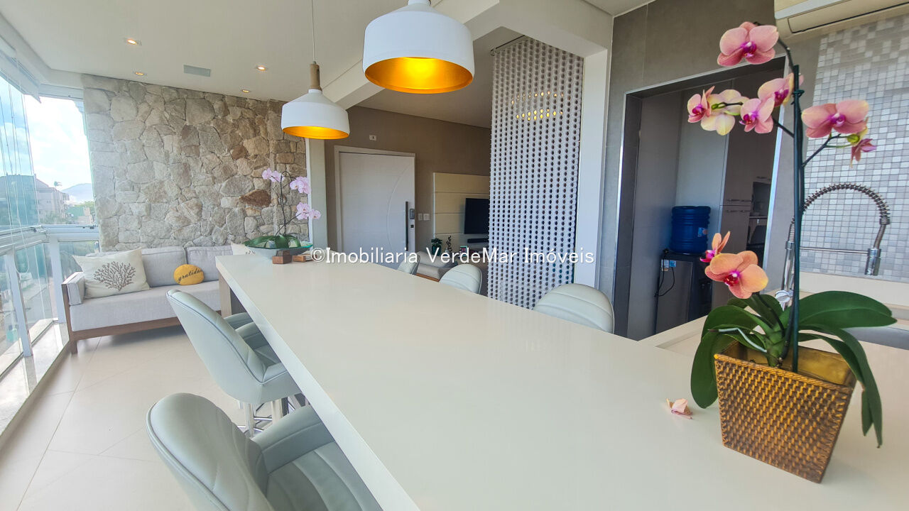 Apartamento à venda na praia da Enseada no Guarujá com 03 suítes, sala para 02 ambientes com ampla sacada, espaço gourmet com churrasqueira, cozinha planejada, lavanderia e área de serviço.