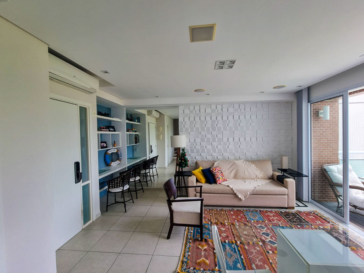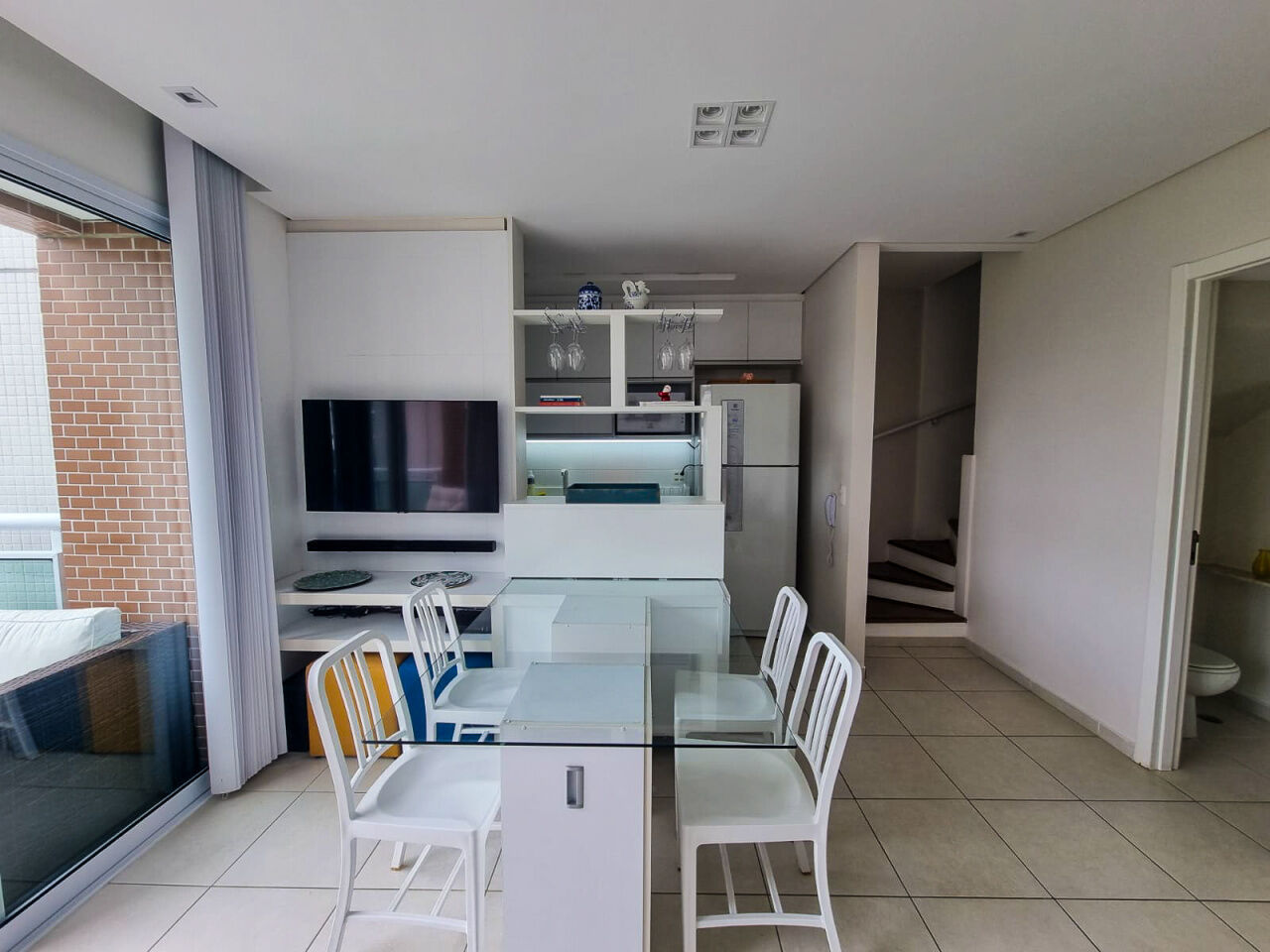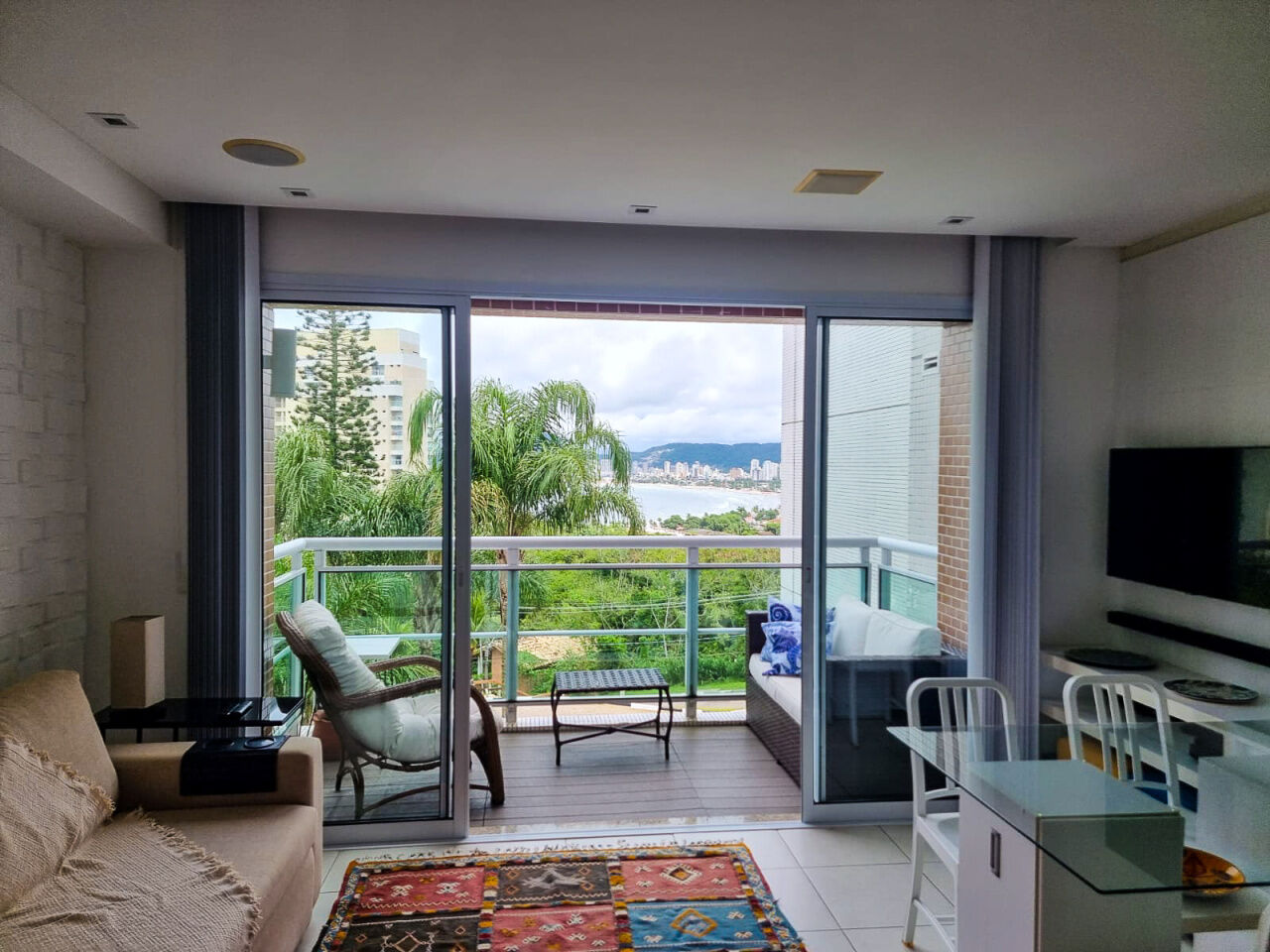 Penhasco das Tartarugas, apartamento a venda na praia da Enseada em Guarujá, mobiliado e decorado com 02 suítes, sala para 02 ambientes com sacada, lavabo,ar condicionado, cozinha americana e lavanderia.