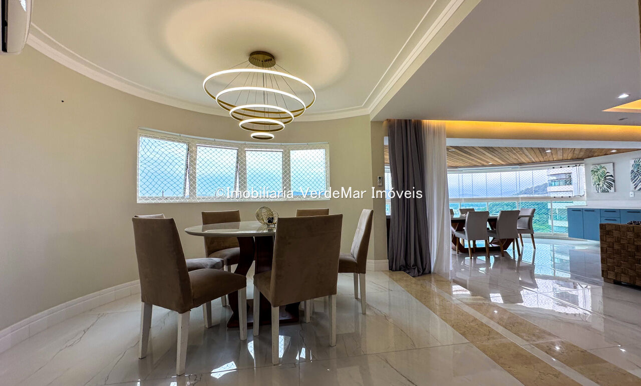 Apartamento no condomínio Tortugas na praia da Enseada no Guarujá, com 4 suítes sendo a máster com closet, sala para 3 ambientes com sacada, sala intima reversível com banheiro, copa, cozinha planejada e área de serviços.