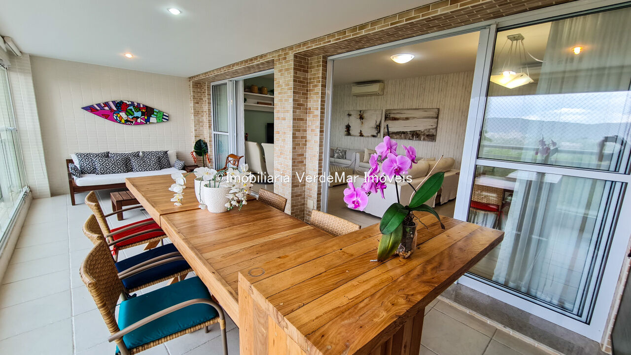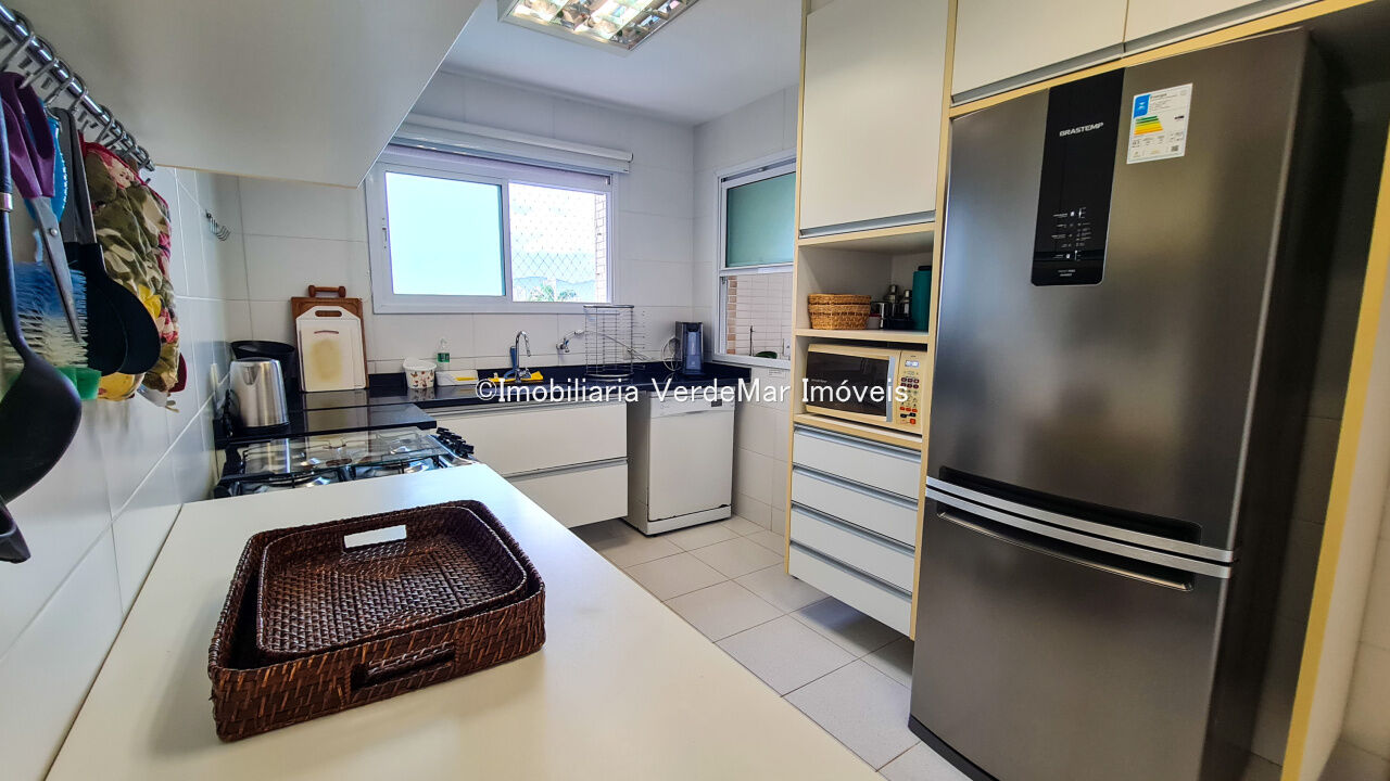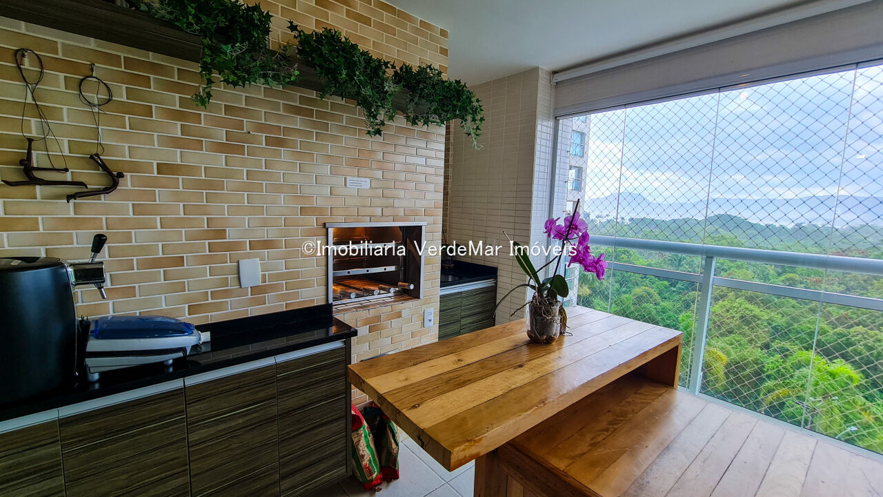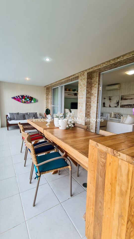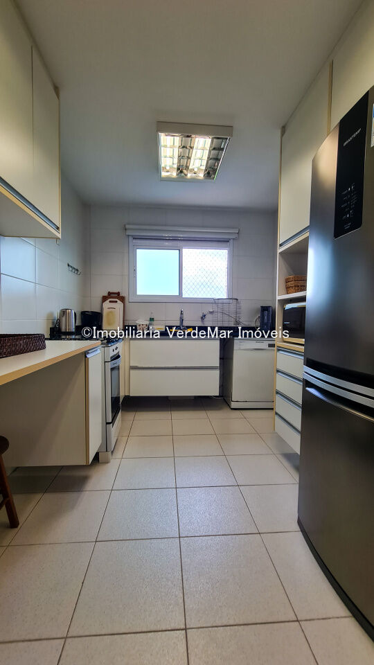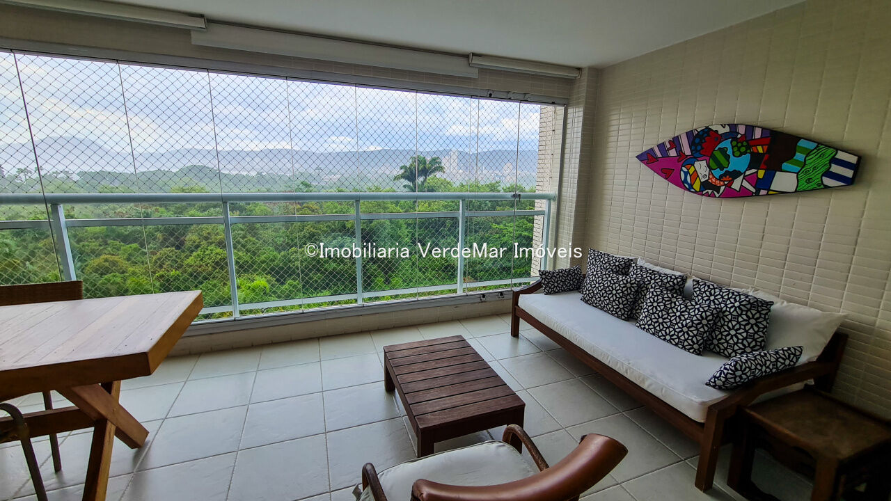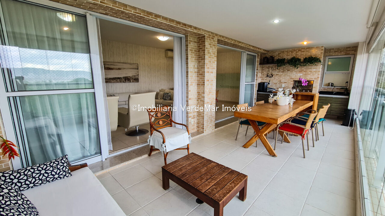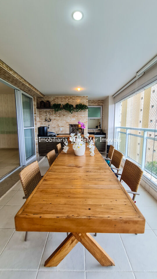 Apartamento a 150 metros da praia da Enseada em Guarujá com vista para o mar, 03 suítes, sala para 02 ambientes, cozinha, lavanderia, dependência de empregada e amplo terraço gourmet com churrasqueira.