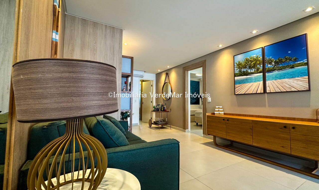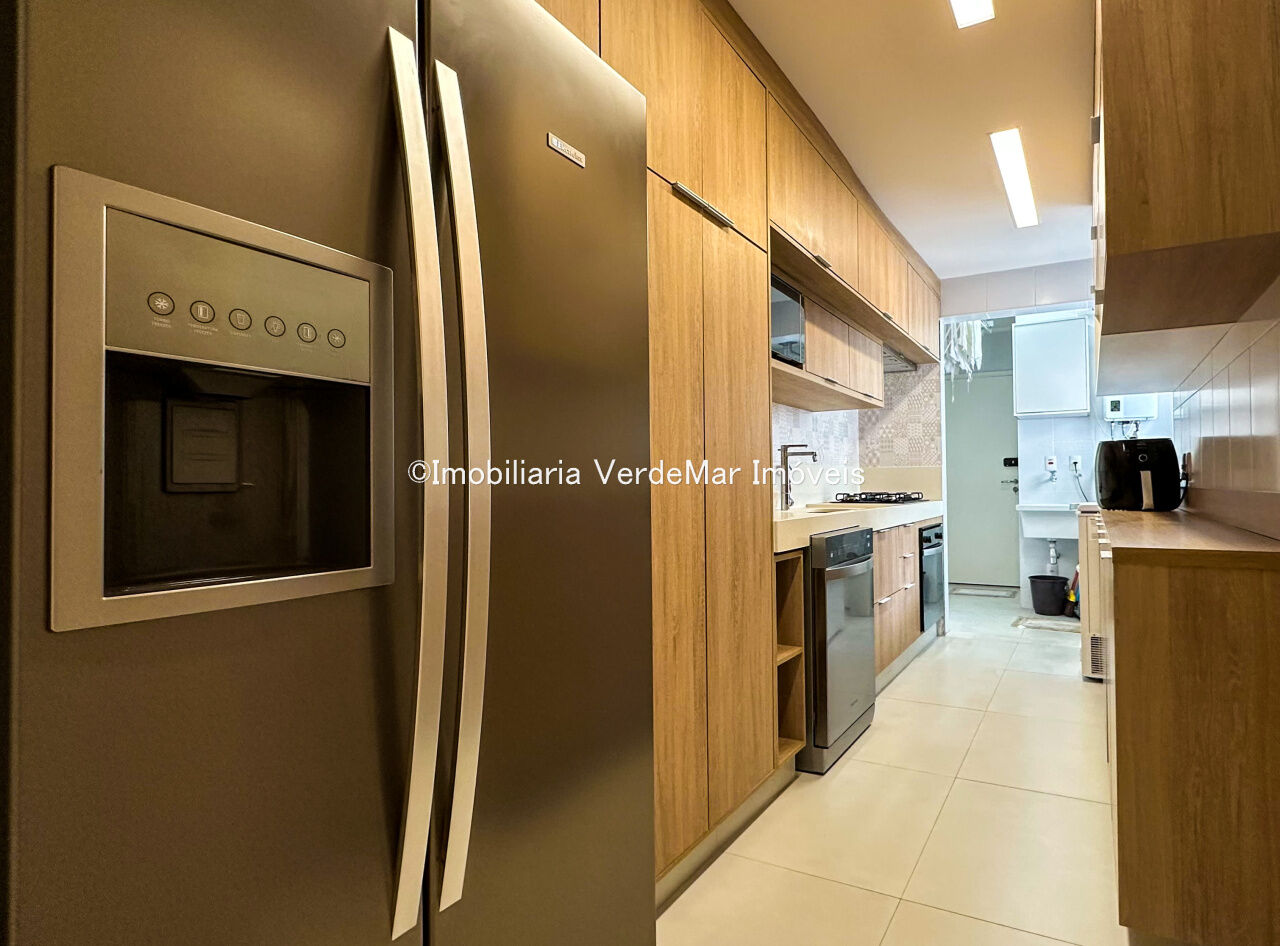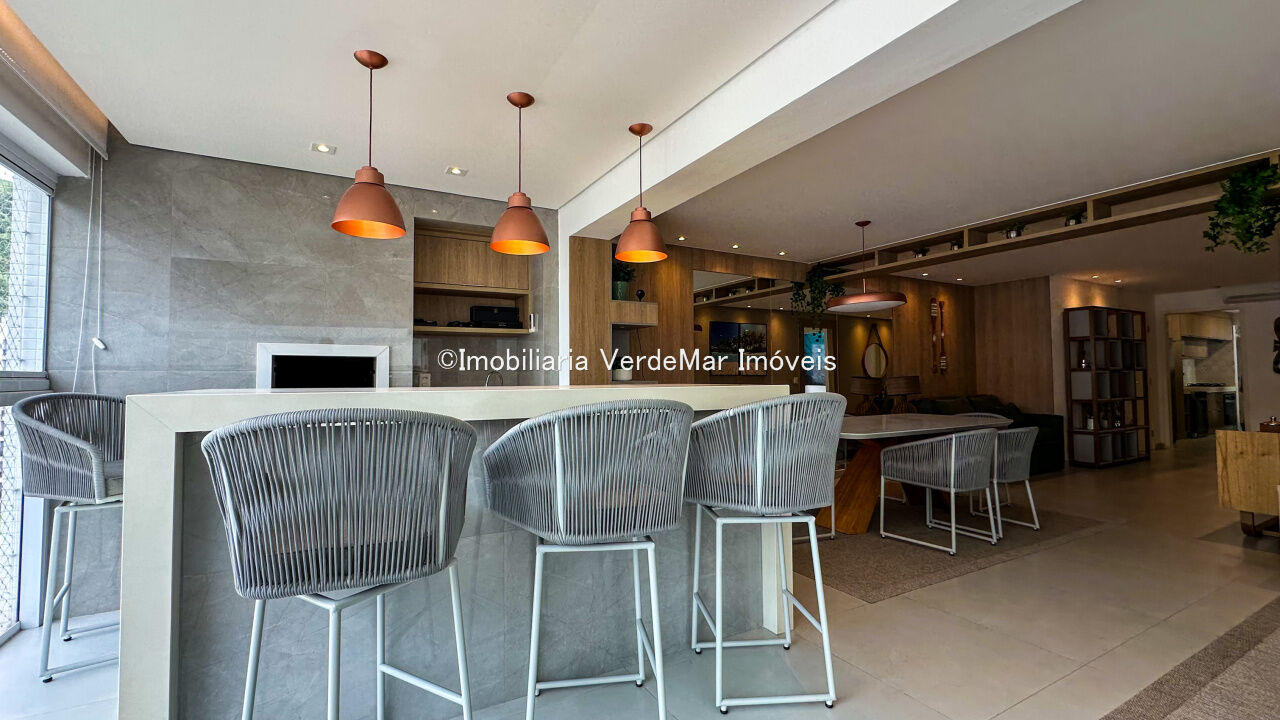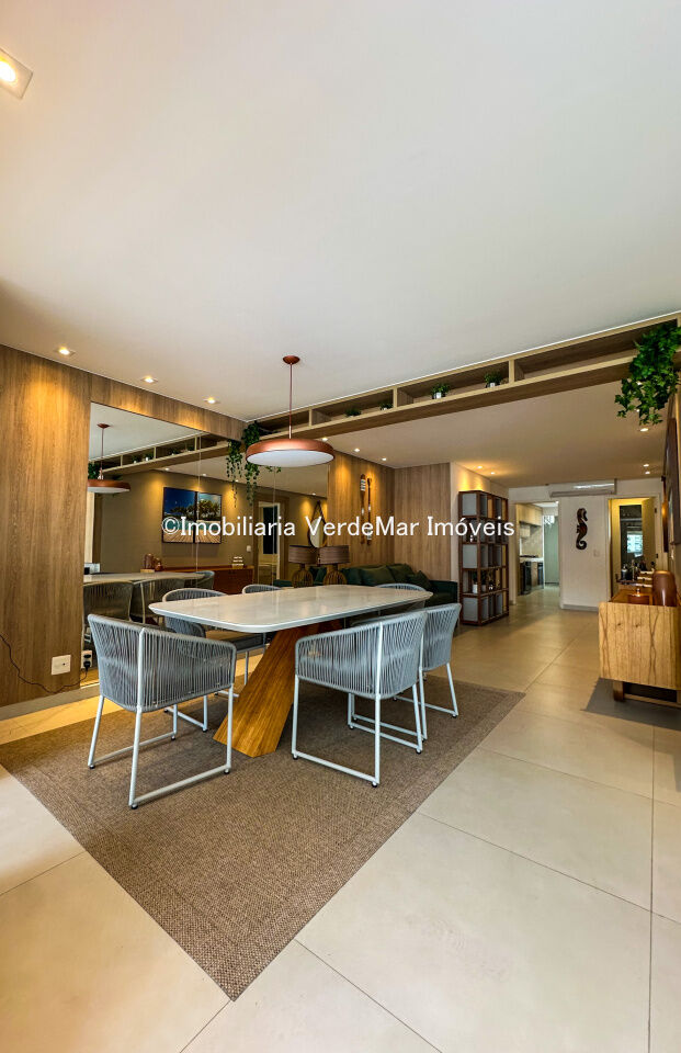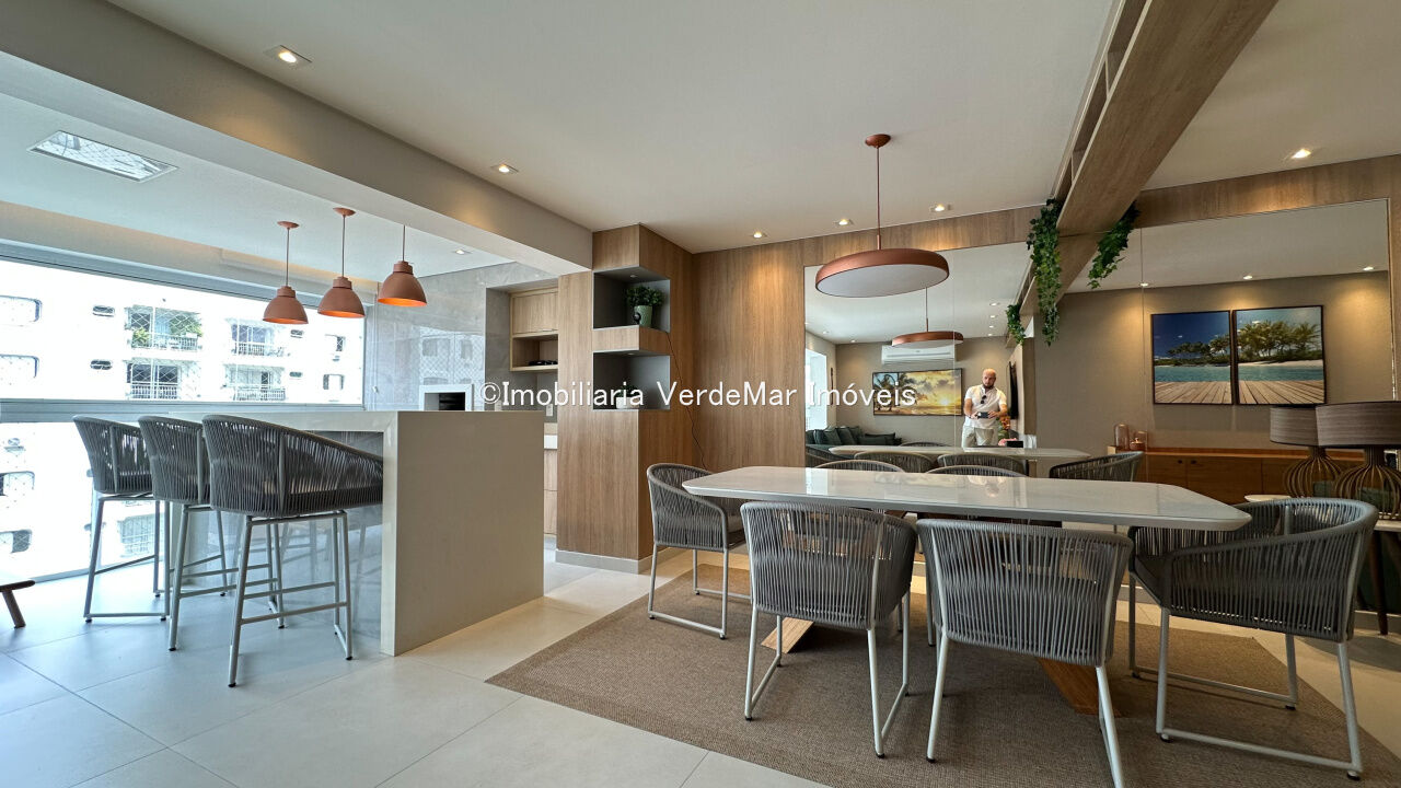 Apartamento na praia da de Pitangueiras em Guarujá, mobiliado, com 03 dormitórios sendo 01 revertido em closet e 01 suíte, sala para 02 ambientes com terraço gourmet e churrasqueira, cozinha planejada e lavanderia.