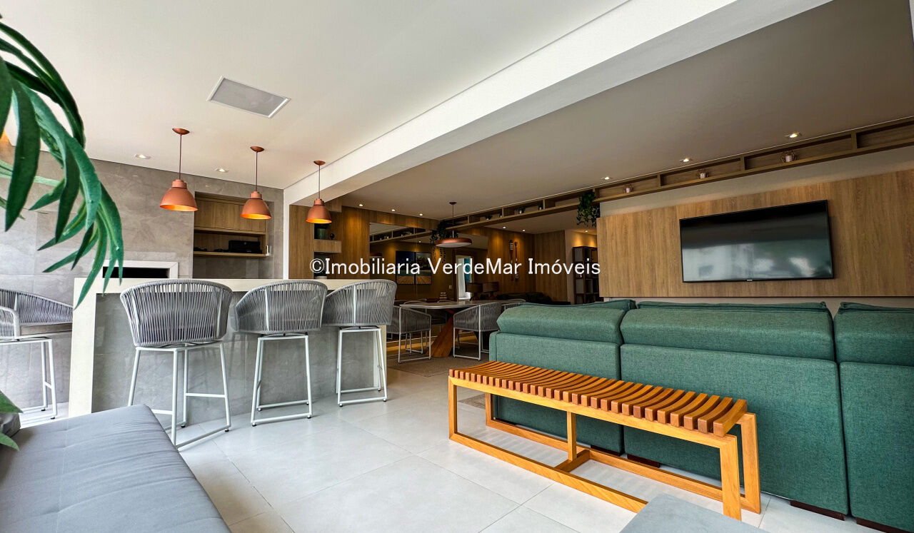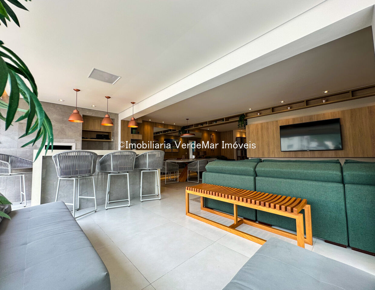 Lazer do prédio com piscina, espaço gourmet privativo com churrasqueira, sauna, salão de festas, lounge, cinema, salão de festas, salão de jogos e serviço de praia.