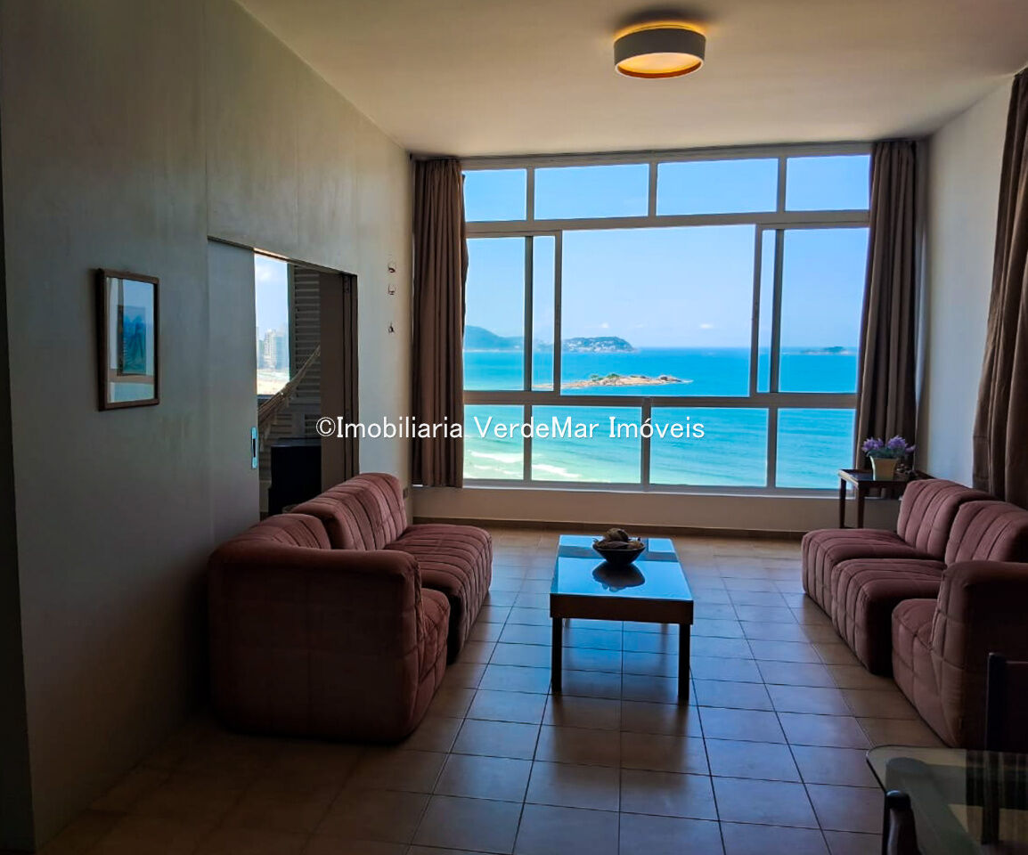 Apartamento À VENDA na praia das Pitangueiras, Frente total para o mar, com 04 dormitórios, ampla sala para 3 ambientes com uma linda vista mar e pé direito alto, copa e cozinha, área de serviço e banheiro de empregada.