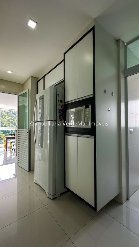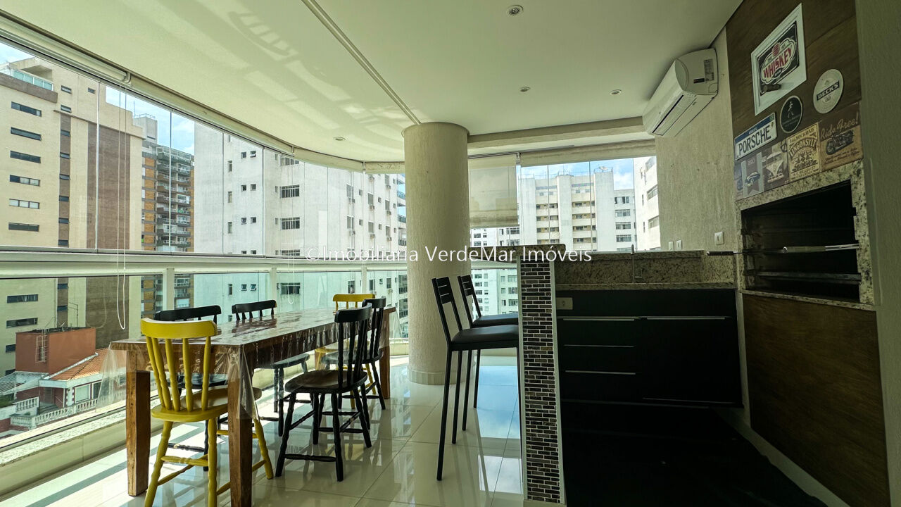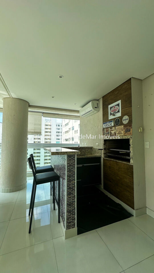 Apartamento à 50 metros da praia de Pitangueiras em Guarujá, com 03 suítes, sala para 02 ambientes com sacada envidraçada, lavabo, varanda gourmet com churrasqueira, cozinha, lavanderia e área de serviço.