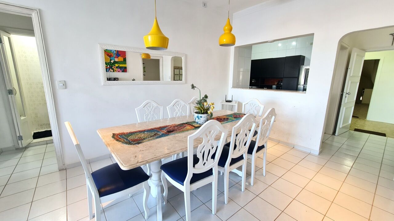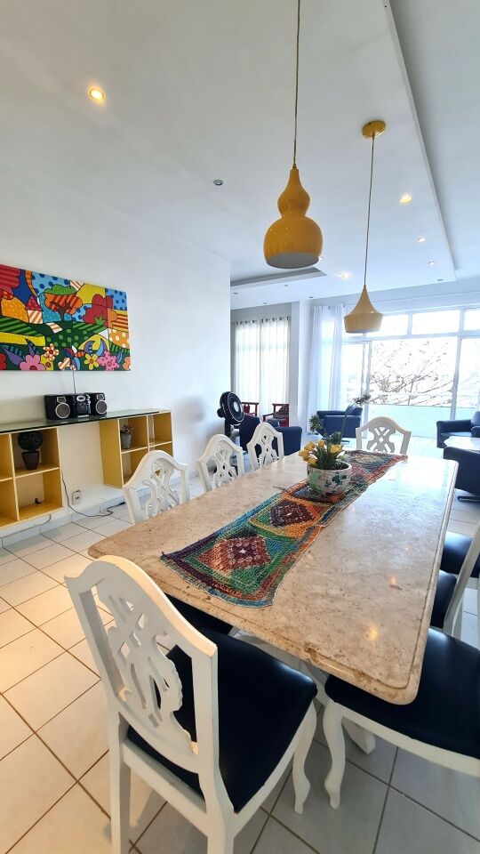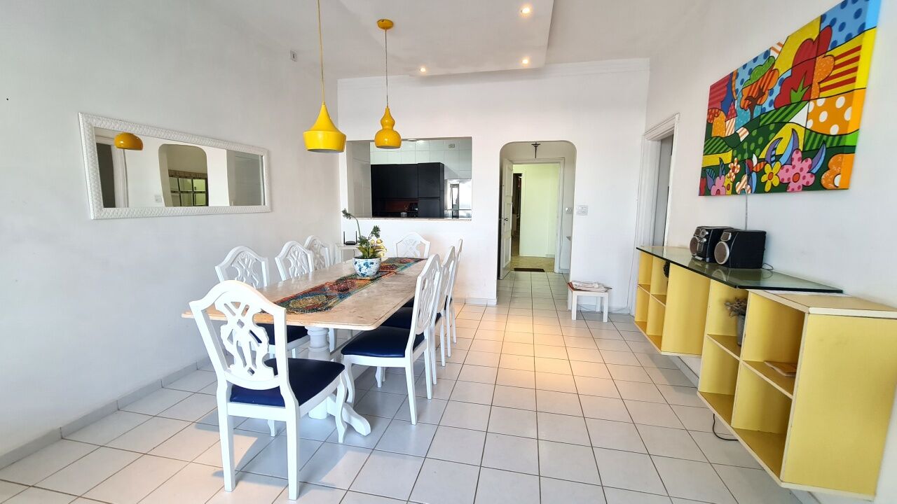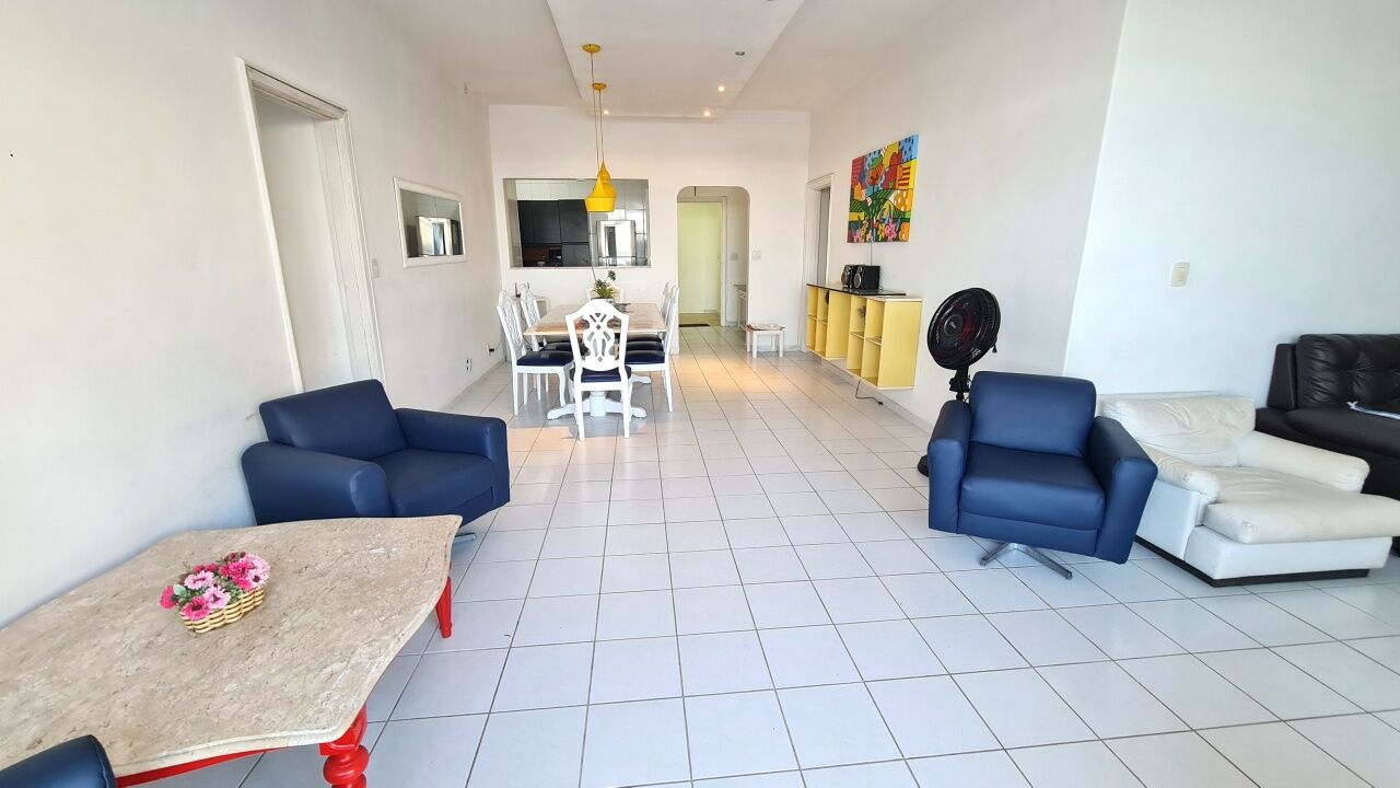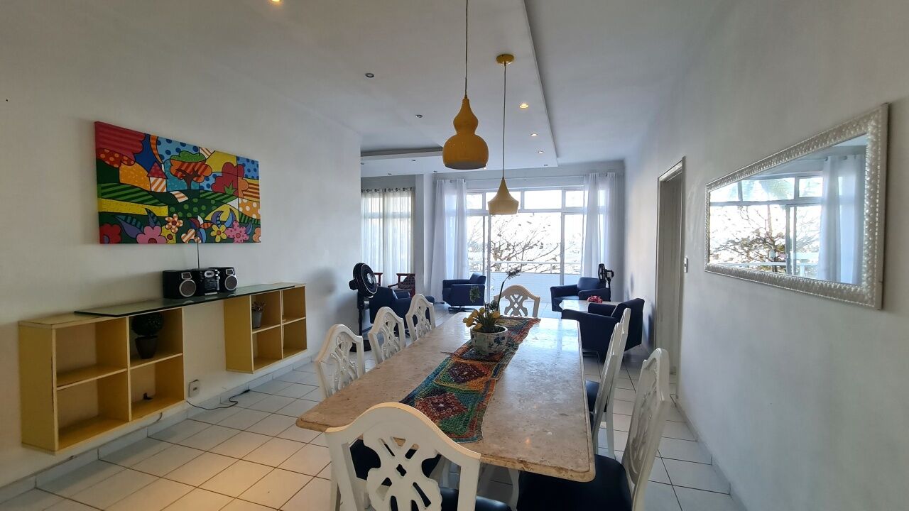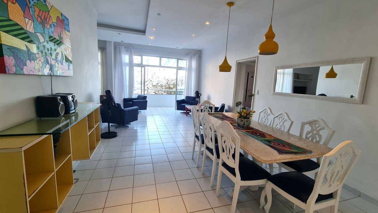 Apartamento na praia das Pitangueiras no Guarujá, vista frontal para o mar, mobiliado, com 04 suítes, sala para 3 ambientes com sacada, copa/cozinha, dependência de empregada com banheiro e área de serviço.