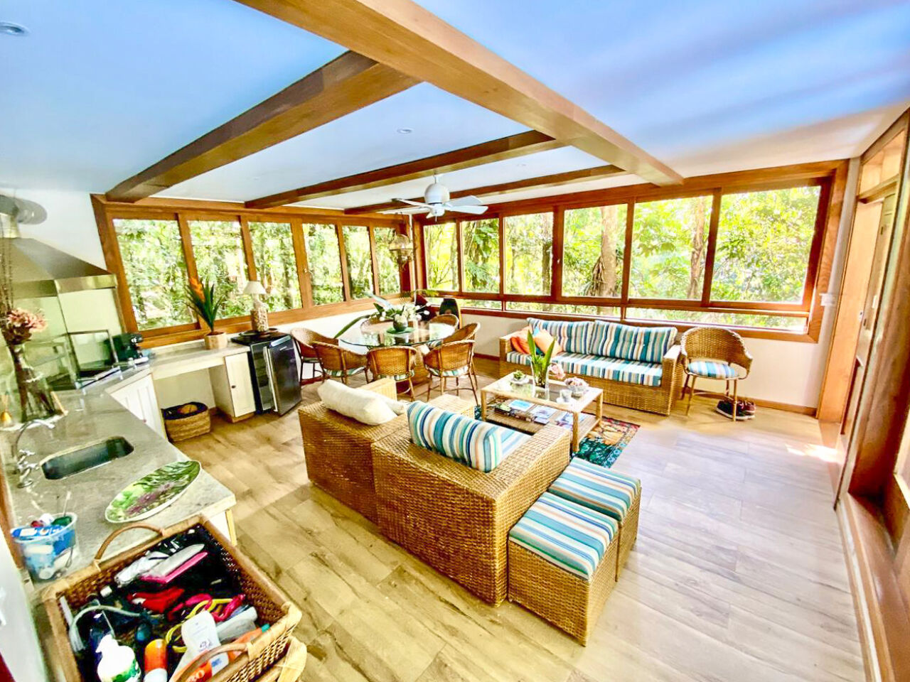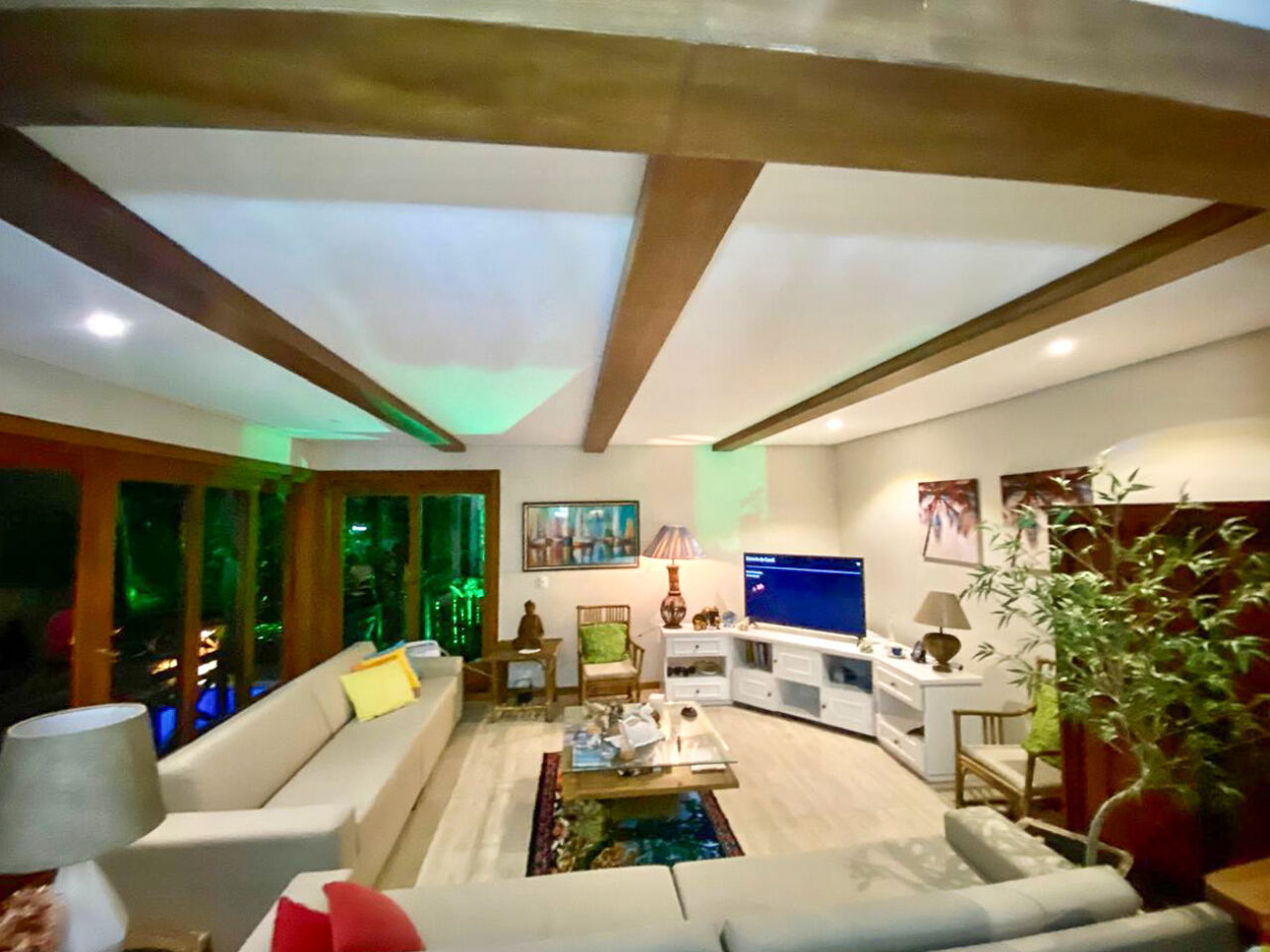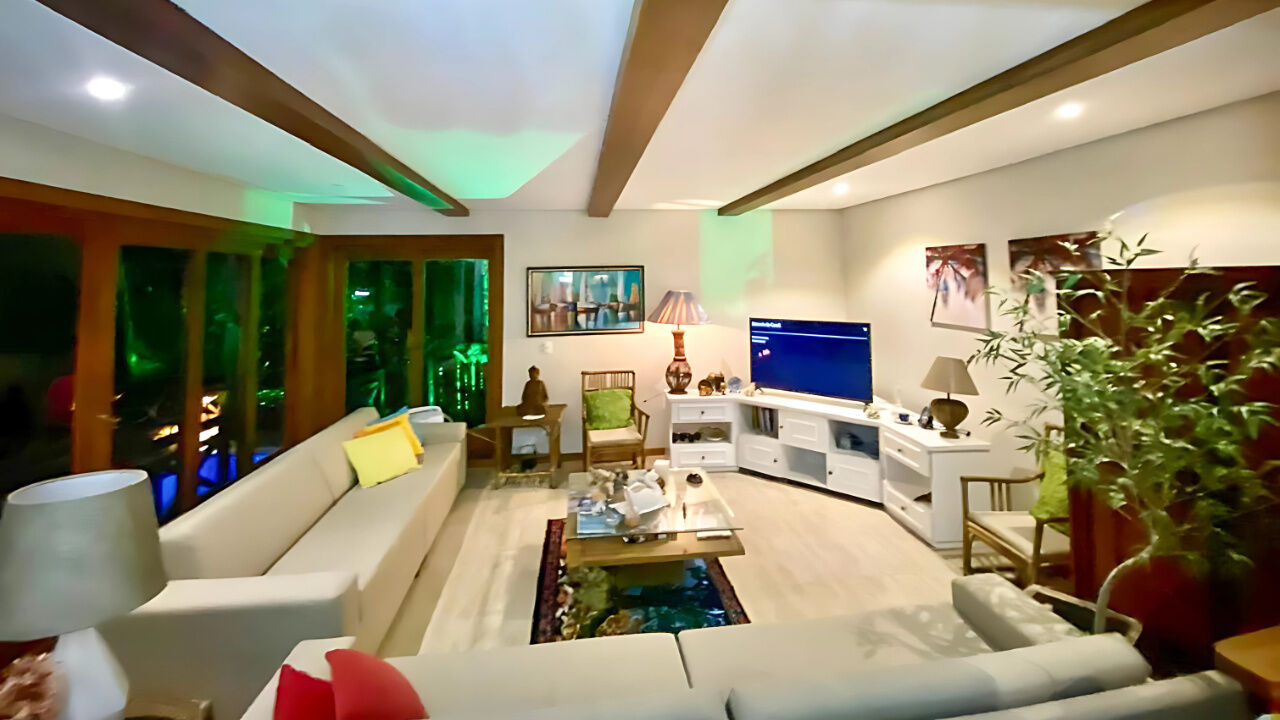 Casa À VENDA no condomínio Iporanga em Guarujá, 5 suítes, sala para 3 ambientes, elevador, pé direito duplo e um amplo living iluminado e aconchegante. amplo terraço, sala de TV, lavabo, cozinha e dependência de empregada,