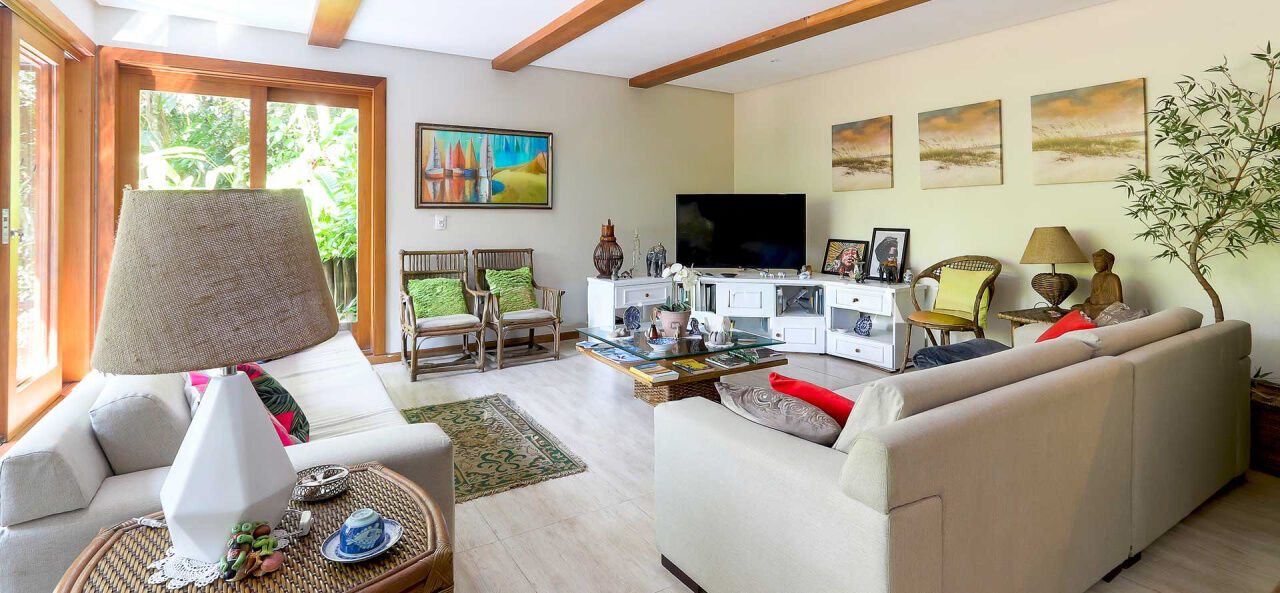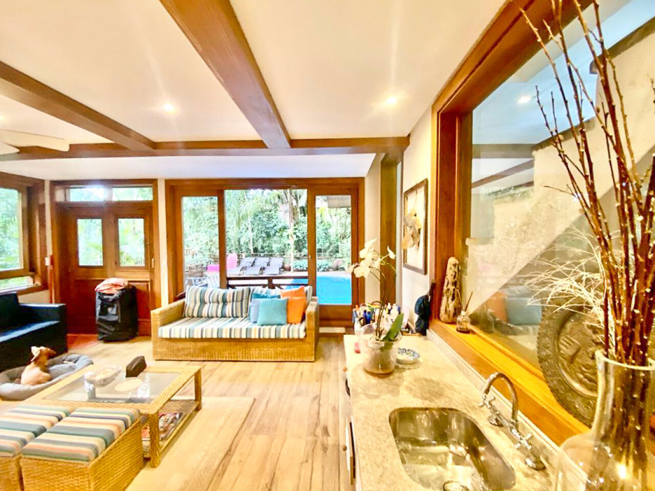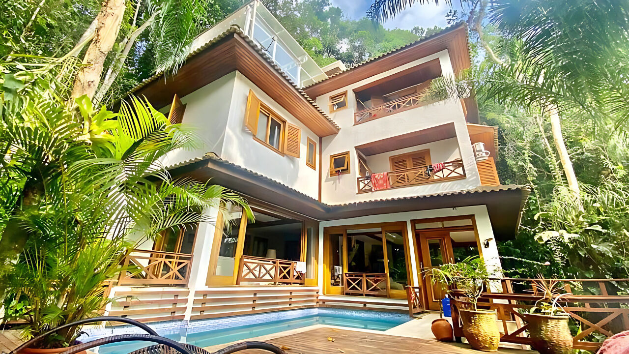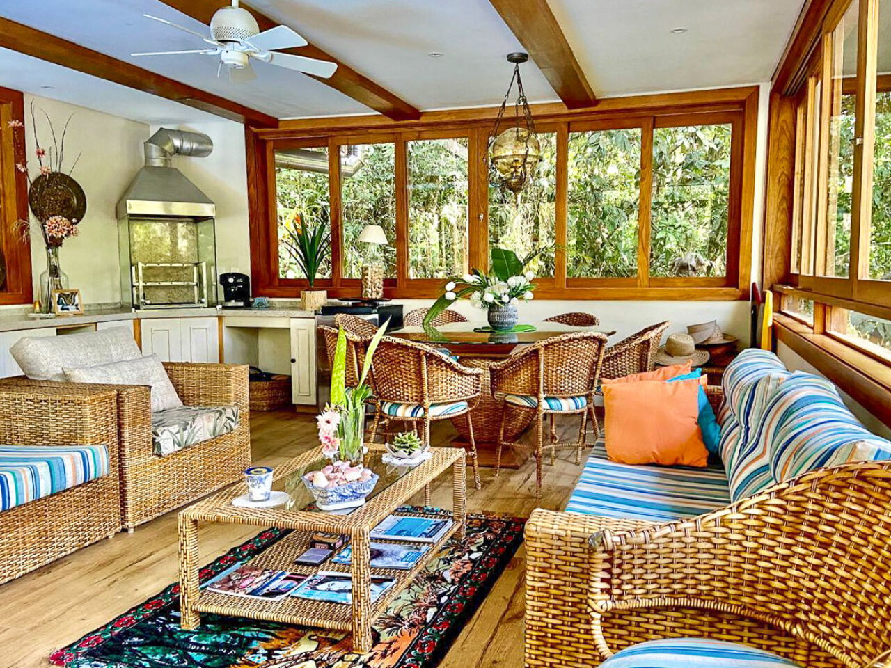Casa À VENDA no condomínio Iporanga em Guarujá, 5 suítes, sala para 3 ambientes, elevador, pé direito duplo e um amplo living iluminado e aconchegante. amplo terraço, sala de TV, lavabo, cozinha e dependência de empregada,