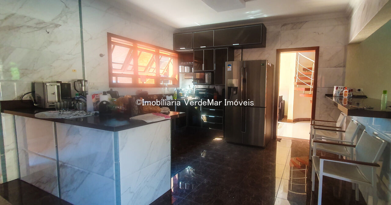Casa à venda na praia de Pernambuco em Guarujá, com 06 suítes todas climatizadas sendo a máster com closed, sala para 02 ambientes, lavabo, varanda, sala de tv, home theater no mezanino, cozinha americana planejada, área de serviços e despensa.