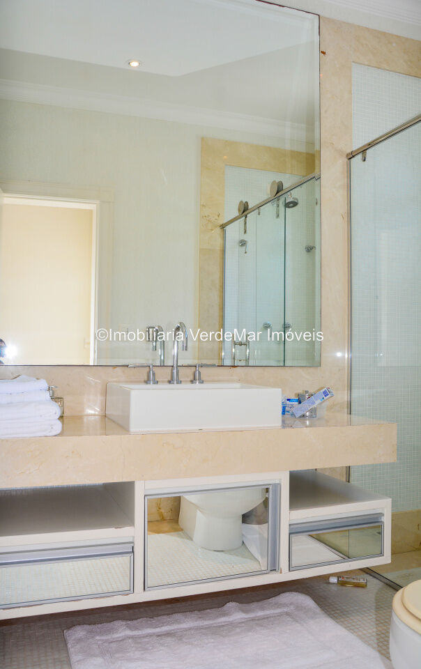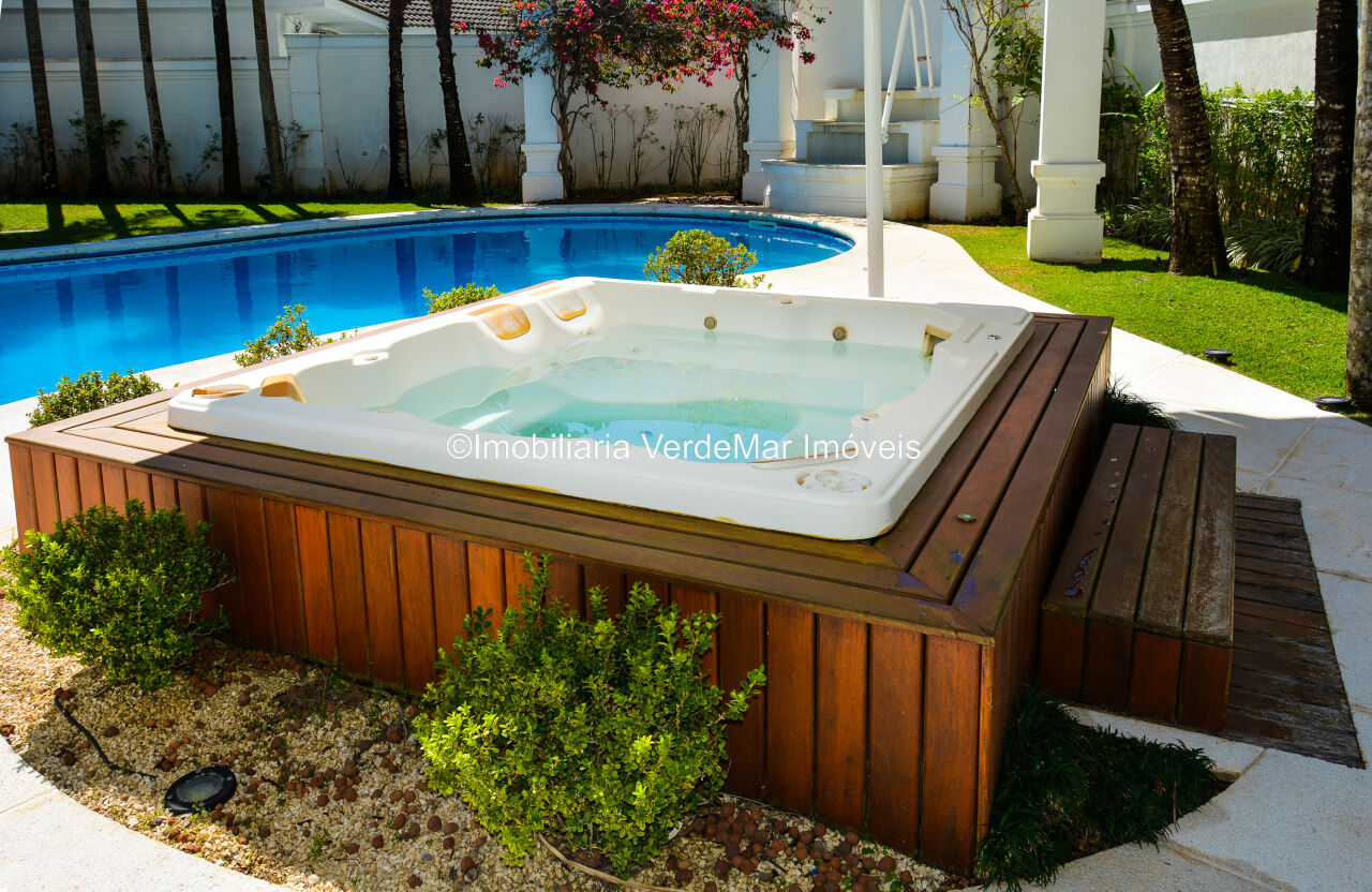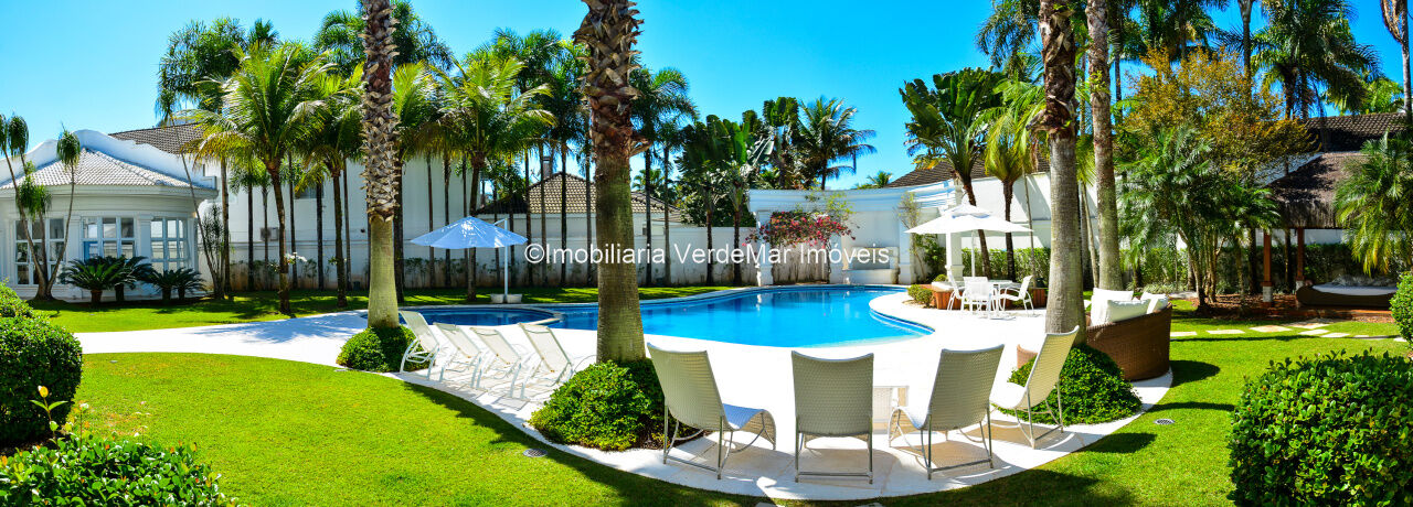 Mansão no Jardim Acapulco na Praia de Pernambuco no Guarujá, mobiliada e decorada, com 7 suítes sendo uma no térreo, e a máster com closet e hidromassagem, sala para 04 ambientes com ampla varanda, sistema de som surround conta com caixas de som embutidas no teto, lavabo, sala de jantar, cozinha planejada, despensa, área de serviço e casa de caseiro completa.