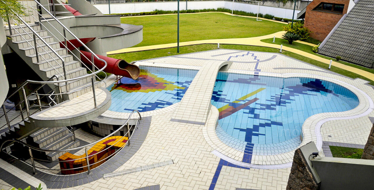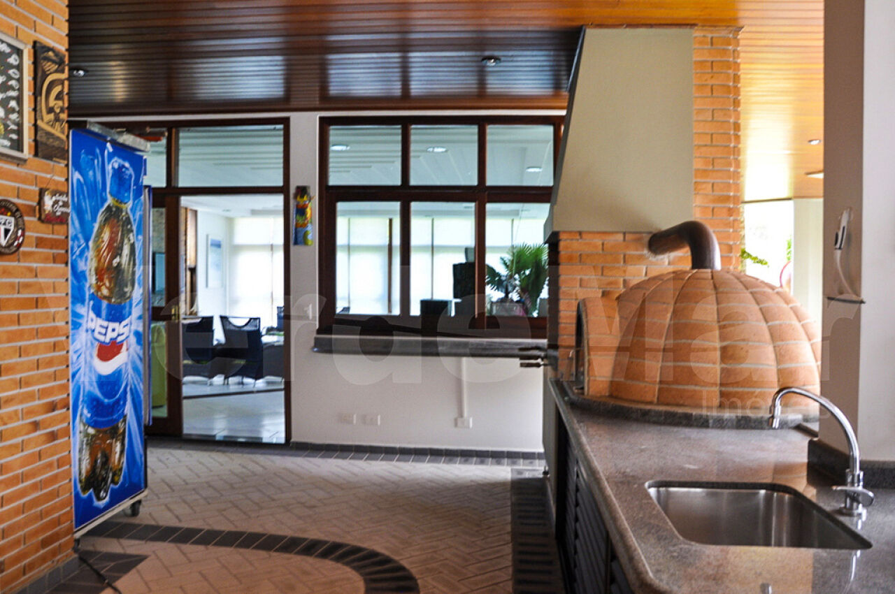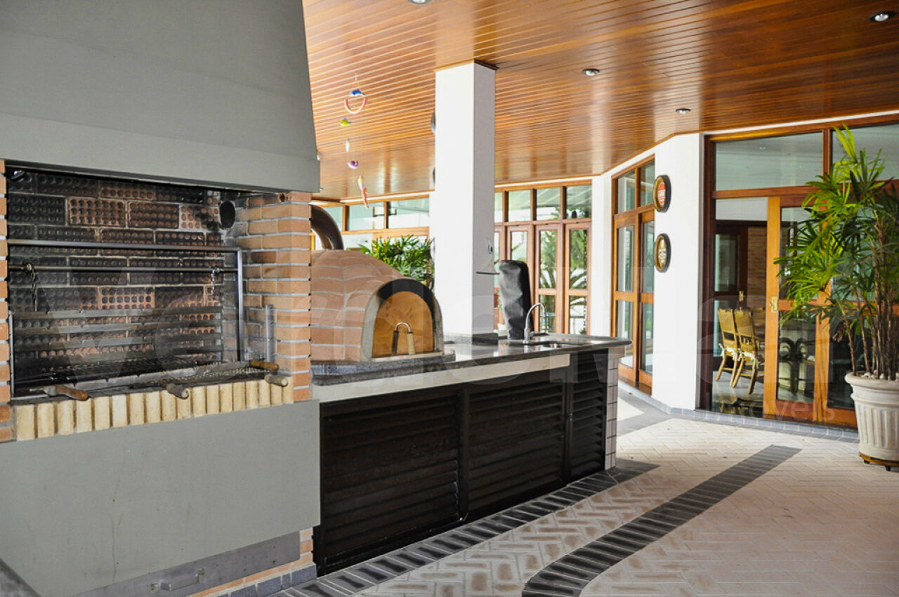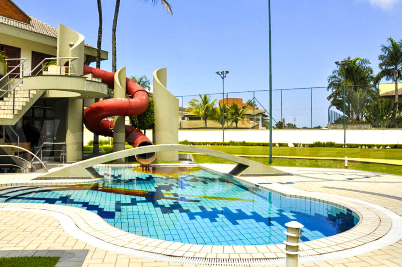 Lazer com piscina, toboágua, amplo espaço gourmet com churrasqueira e forno de pizza, sala de home theater e campo de futebol.