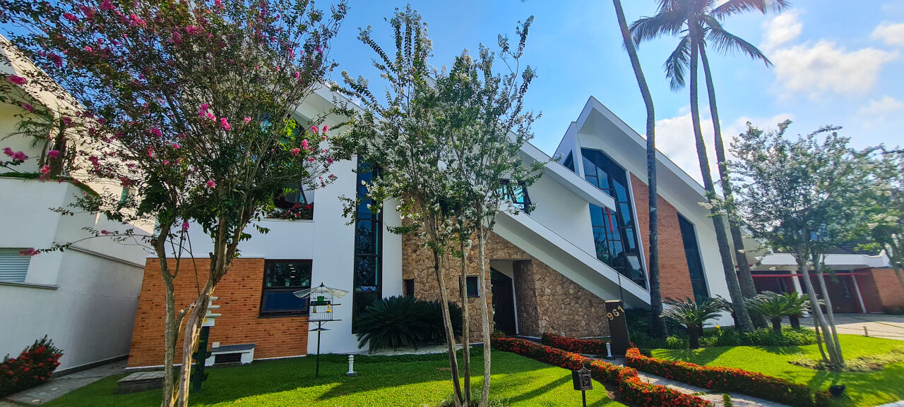 Casa no Jardim Acapulco na praia do Pernambuco em Guarujá, com arquitetura arrojada, mobiliada, 4 suítes, quarto de hóspedes, sala para 2 ambientes com lavabo e varanda, sala de tv, sala de estar, cozinha, lavanderia e dependência de empregada.