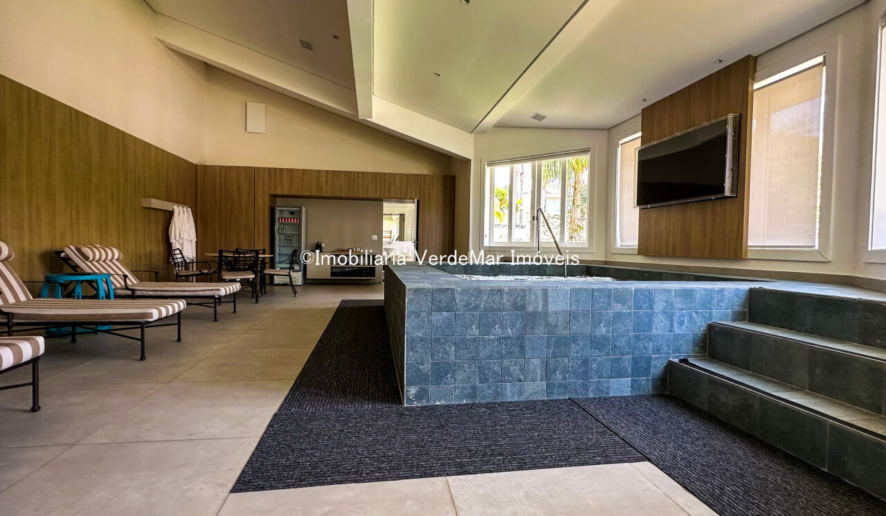 Lazer com amplo jardim e rico paisagismo, piscina com raia e hidromassagem, spa ofurô com sauna seca e úmida, sala de jogos, academia, sala de tv, mini quadra poliesportiva, beach tênis, casa de bonecas, playground, e espaço gourmet com churrasqueira.