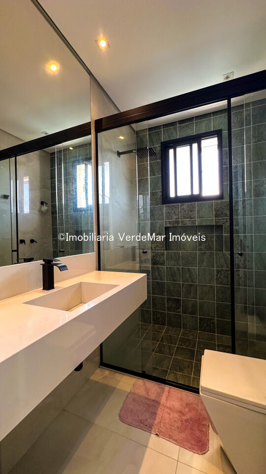 Casa nova à venda no Jardim Acapulco na praia de Pernambuco em Guarujá, com 04 suítes sendo 01 máster com hidromassagem, sala para 2 ambientes, home theater/suíte térrea, lavabo, cozinha planejada e área de serviços.