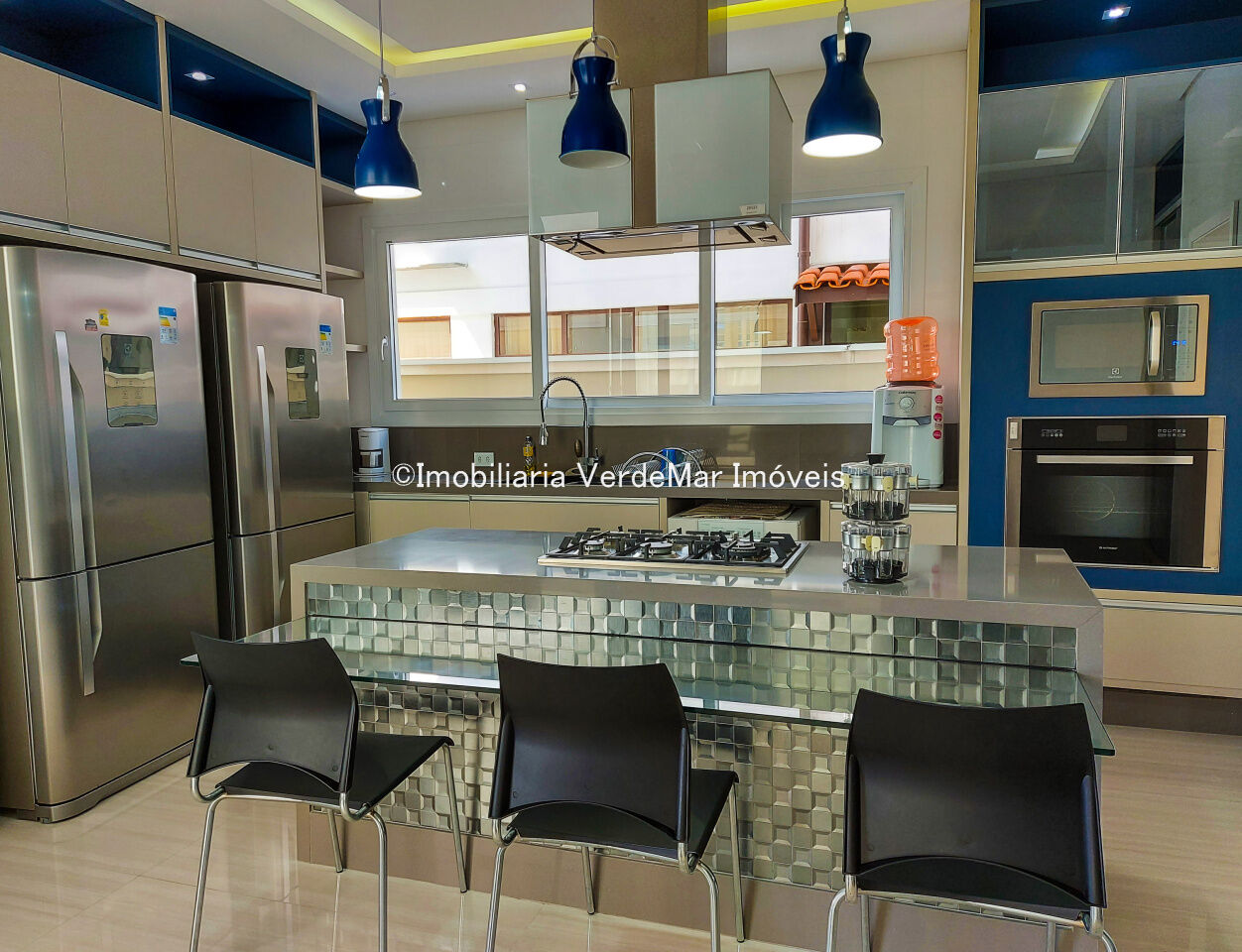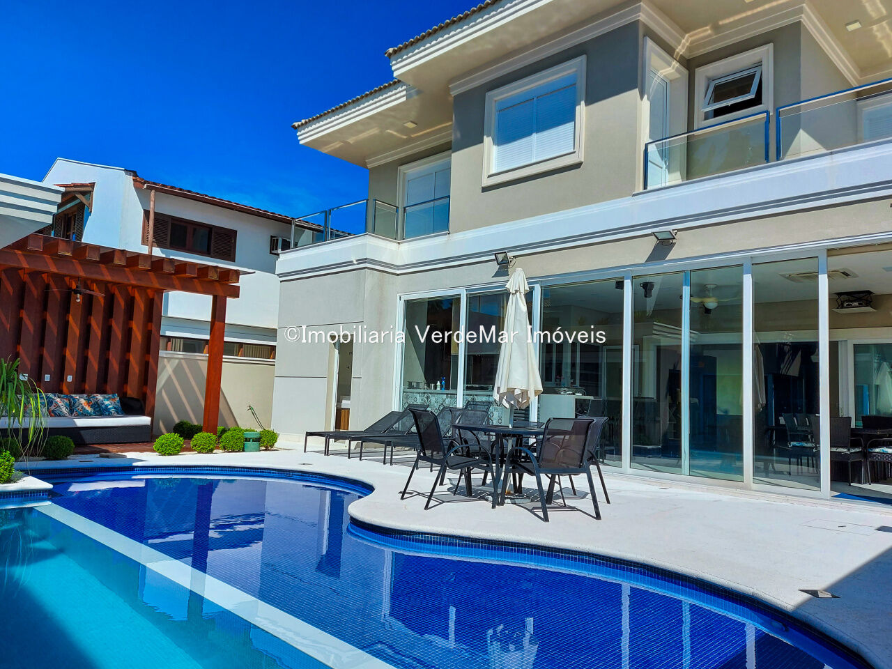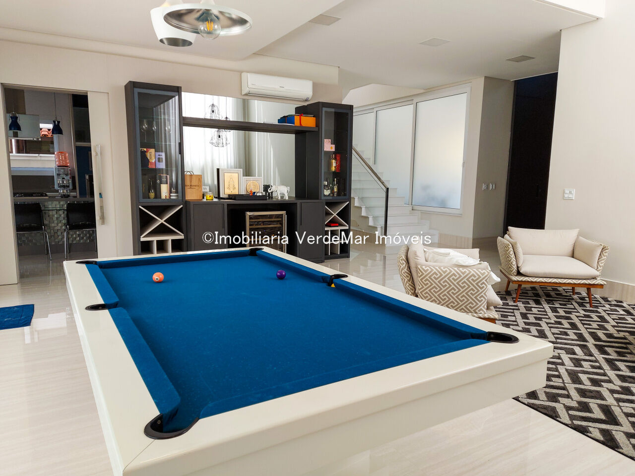 Casa mobiliada e decorada no Jardim Acapulco na praia de Pernambuco em Guarujá, com 05 suítes todas climatizadas, sala para 02 ambientes com bar e jogos, terraço mobiliável, lavabo, cozinha planejada e lavanderia.