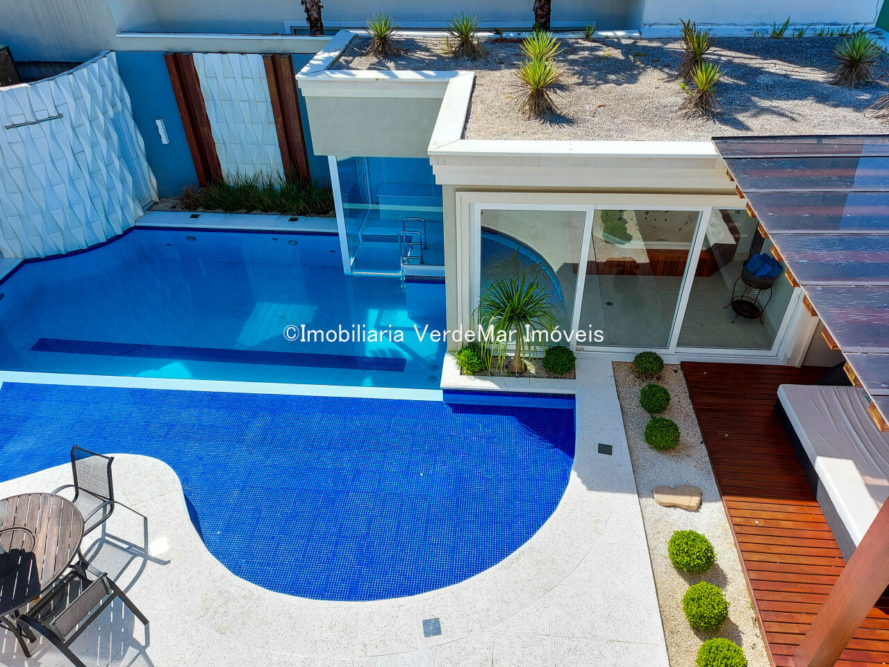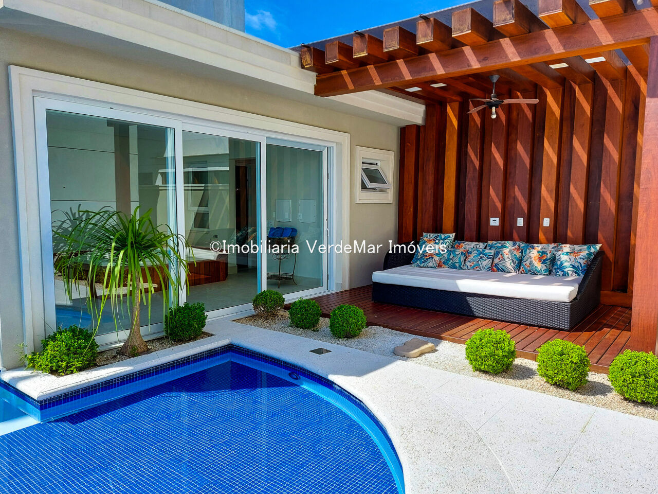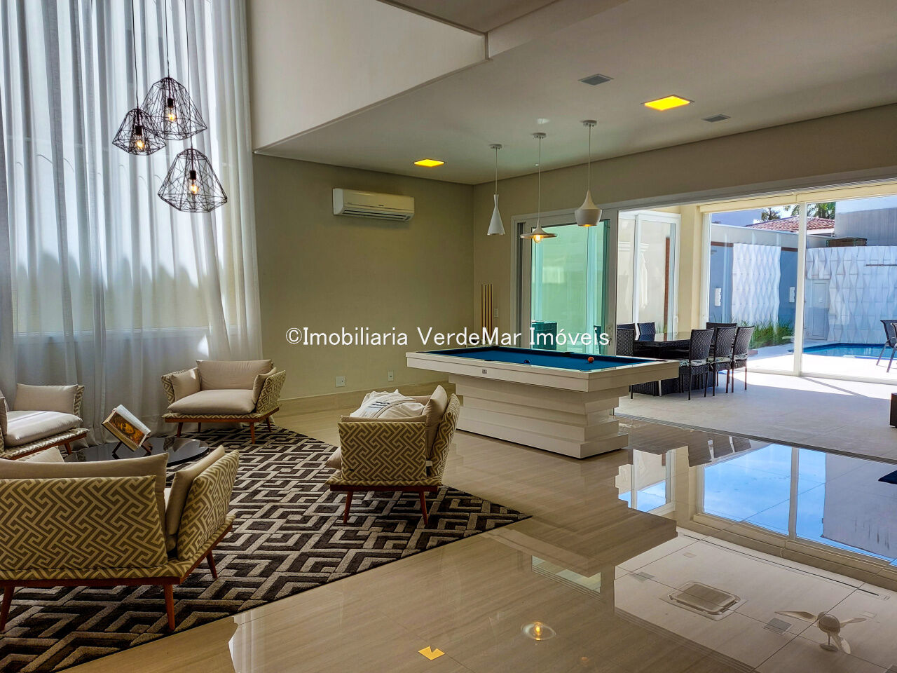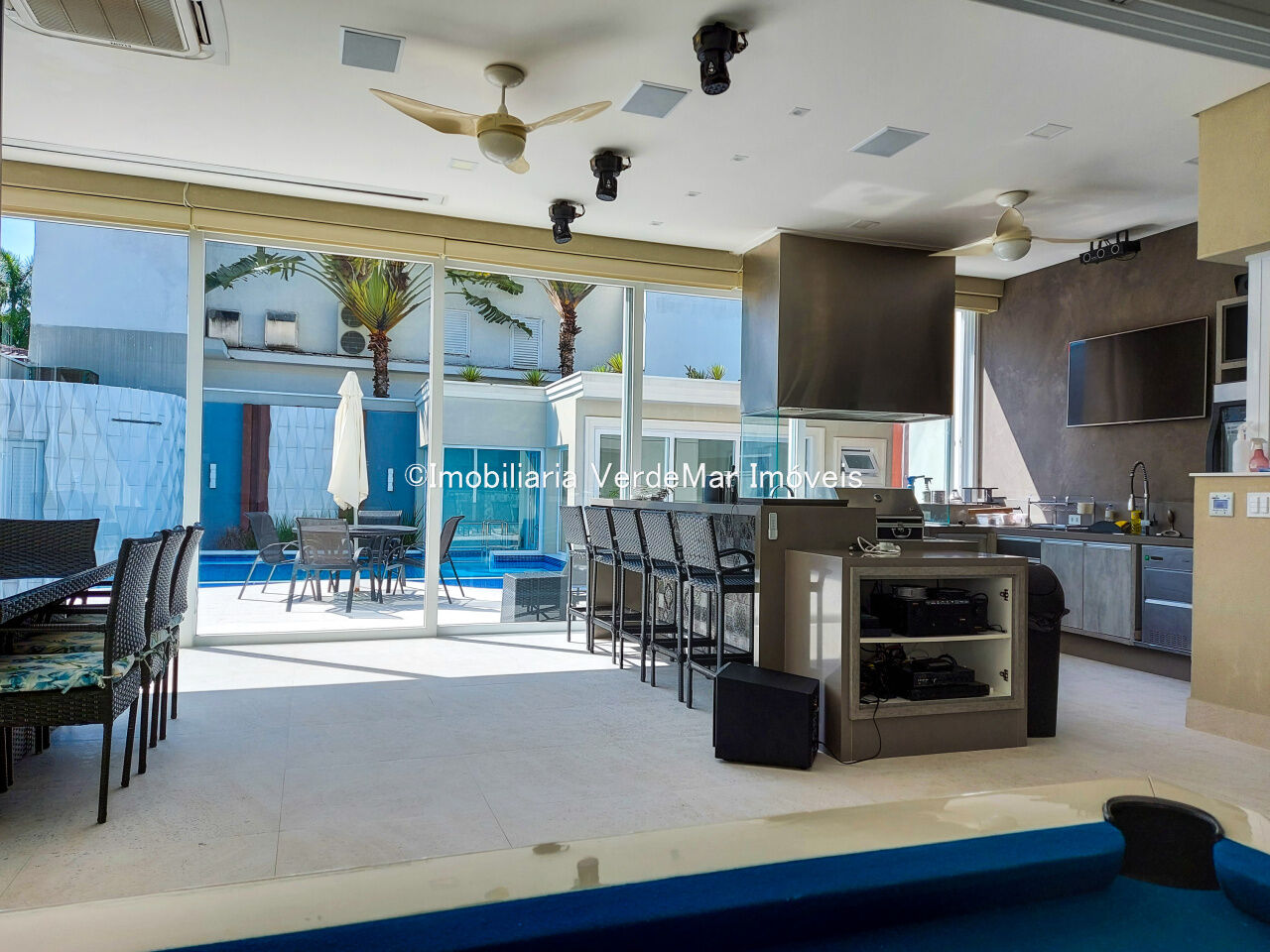 Casa mobiliada e decorada no Jardim Acapulco na praia de Pernambuco em Guarujá, com 05 suítes todas climatizadas, sala para 02 ambientes com bar e jogos, terraço mobiliável, lavabo, cozinha planejada e lavanderia.
